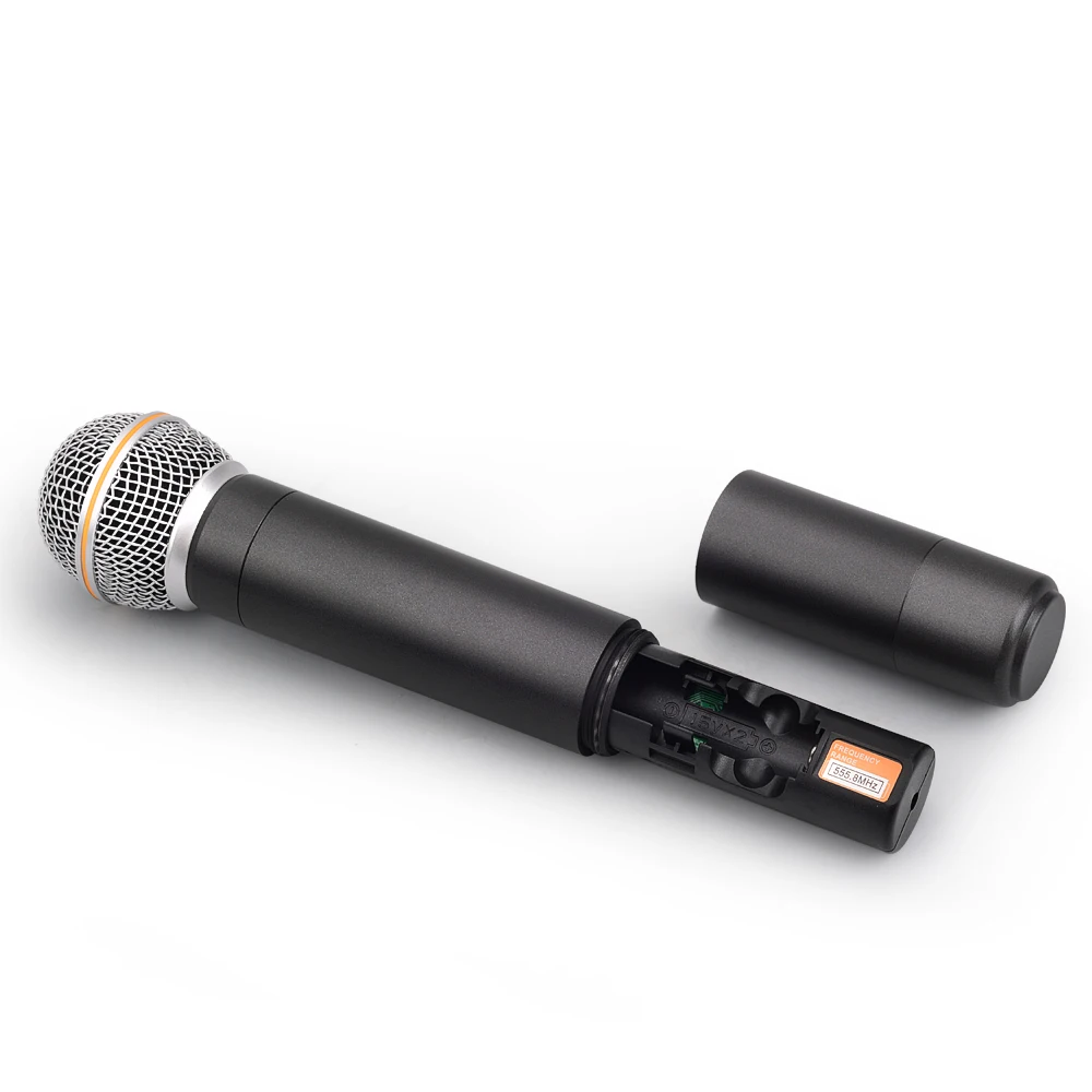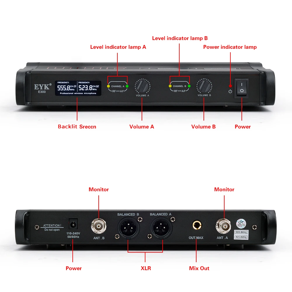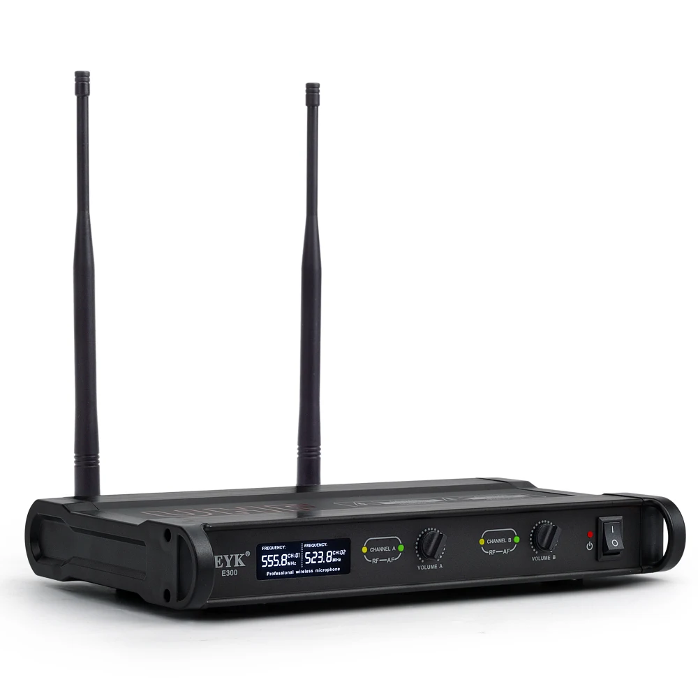 1. УВЧ диапазон фиксированной частоты 523,8 МГц, 555,8 МГц. 2. Передатчик: 2 шт. полностью металлических ручных микрофона с функцией отключения звука. 3. Передняя часть приемника: металлическая коробка, выключатель питания, экран с подсветкой, индивидуальная Ручка громкости, индикатор AF/RF. 4. Задняя часть приемника: интерфейс питания, два отдельных выхода XLR и один смешанный выход 1/4 ", два интерфейса антенны 5. Диапазон: до 200 футов (до 60 метров), подходит для караоке, речи, вечерние, церковные и т. Д. 6. Батарея передатчика: 4*1,5 V AA (не прилагаются)