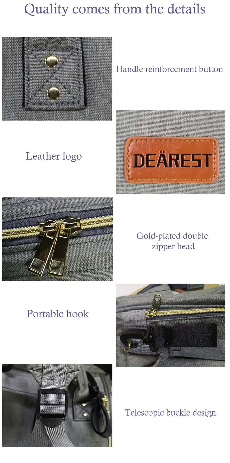 Название продукта: рюкзак для мамы Бренд: Dearest Материал: 600D катионный окрашенный полиэстер Вес: 0.8кг