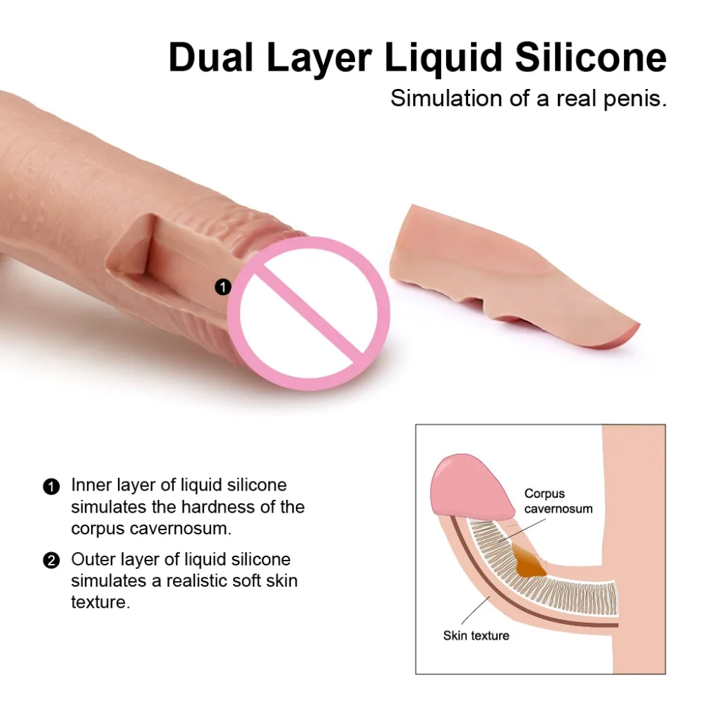 Имитация настоящего пениса: 1. Внутренний слой жидкого силикона Моделирование твердости каверносума корпуса. 2. Внешний слой жидкого силикона, имитирующий мягкую текстуру кожи.