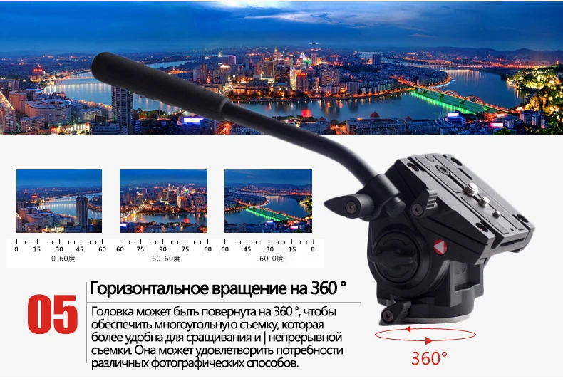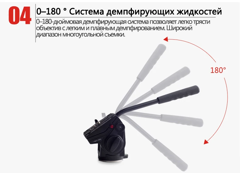 Особенности 1. Новейшая модернизированная пластина быстрого крепления 2. Ручка блокировки безопасности 3. Профессиональный дизайн Пузырькового Уровня 4. Ноская и нескользящая конструкция 5. Быстрее, проще и безопаснее в использовании 6. Панорамная съемка на 360 градусов 7. От 0 до 180 градусов демпфирующая система жидкости 8. Винты камеры UNC1/4 и 3/8 дюйма 9. Левая и правая сменная ручка Технические характеристики Высота: 100 мм Диаметр основания: 60 мм Винты камеры: UNC3/8 и 1/4 дюйма Горизонтальный угол: 360 градусов Вес: 950 г Максимальная нагрузка: 4 кг Комплект поставки: Один с заполненной жидкостью видеоголовкой для фотоаппарата Одно руководство Один гарантийный талон Одна коробка цвета