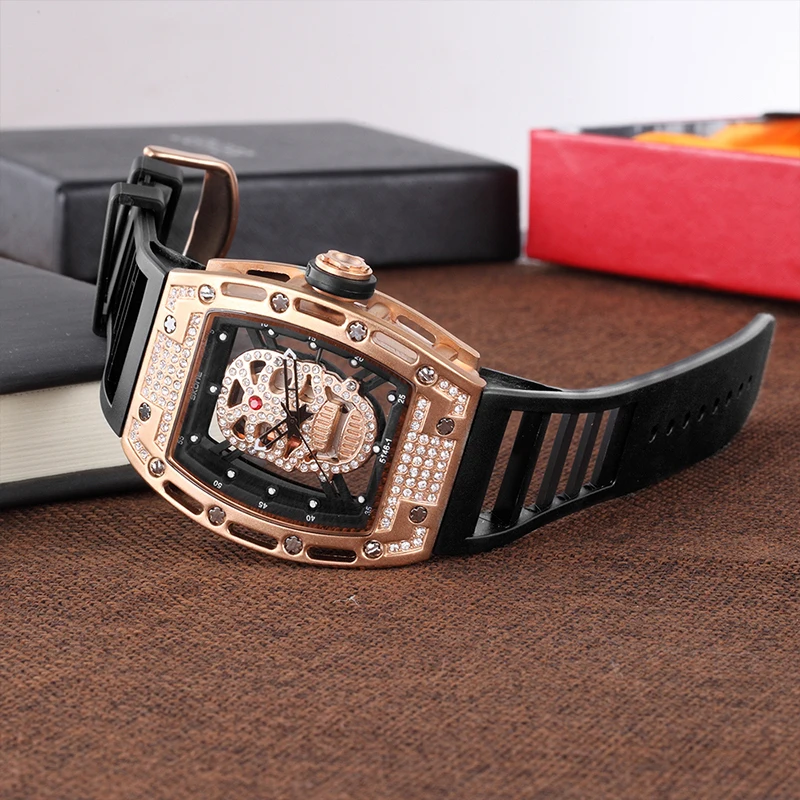 Мужские кварцевые часы, военный силиконовый ремешок, винная бочка, циферблат, мужские часы с алмазным 3D матовым циферблатом, оригинальные спортивные часы