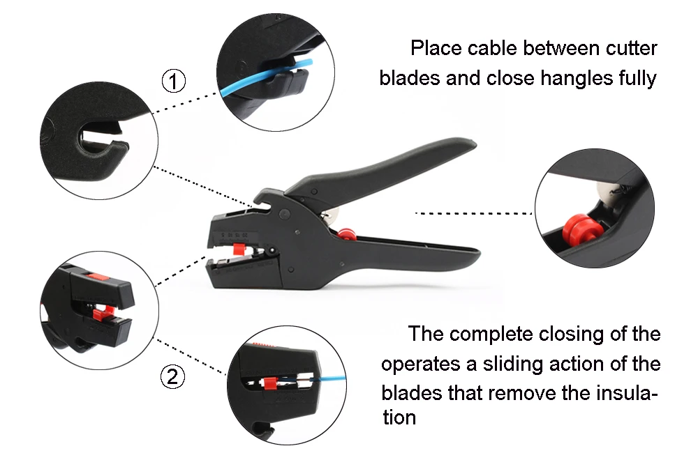 For stripping the plastic or rubber insulation of the single,multiple cables and wires of 0.08-2.5mm2