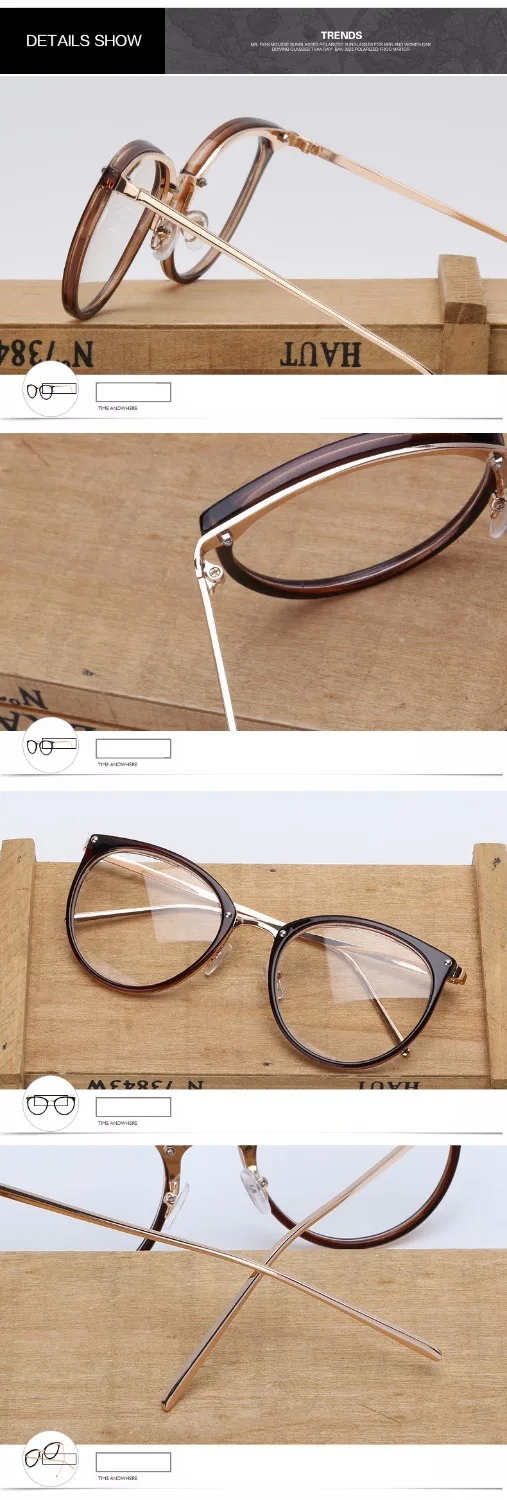 Прозрачная Оптическая металлическая оправа, очки с большими прозрачными линзами, очки для мужчин и женщин, мужские ретро очки кошачий глаз, оправа для очков