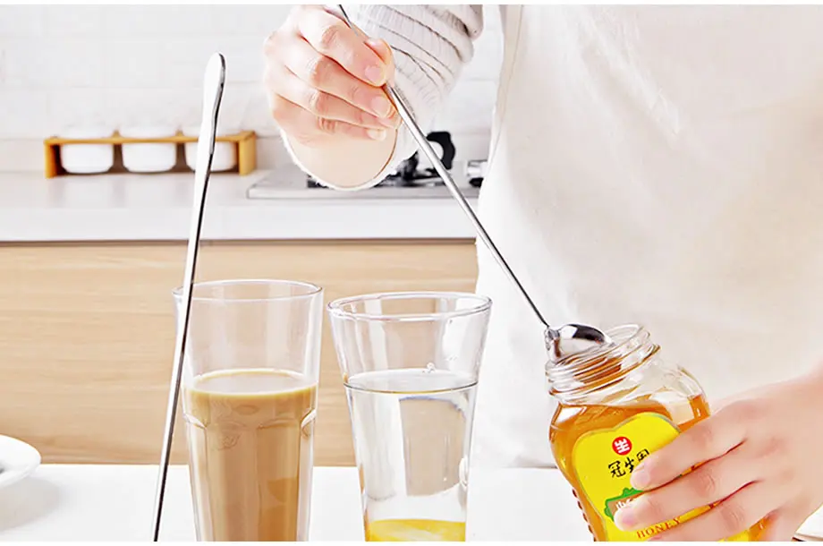 Чайная и кофейная ложка с длинной ручкой из нержавеющей стали, перемешивающая ложка для смешивания молока, ложка для мороженого и десертов, бытовые кухонные принадлежности