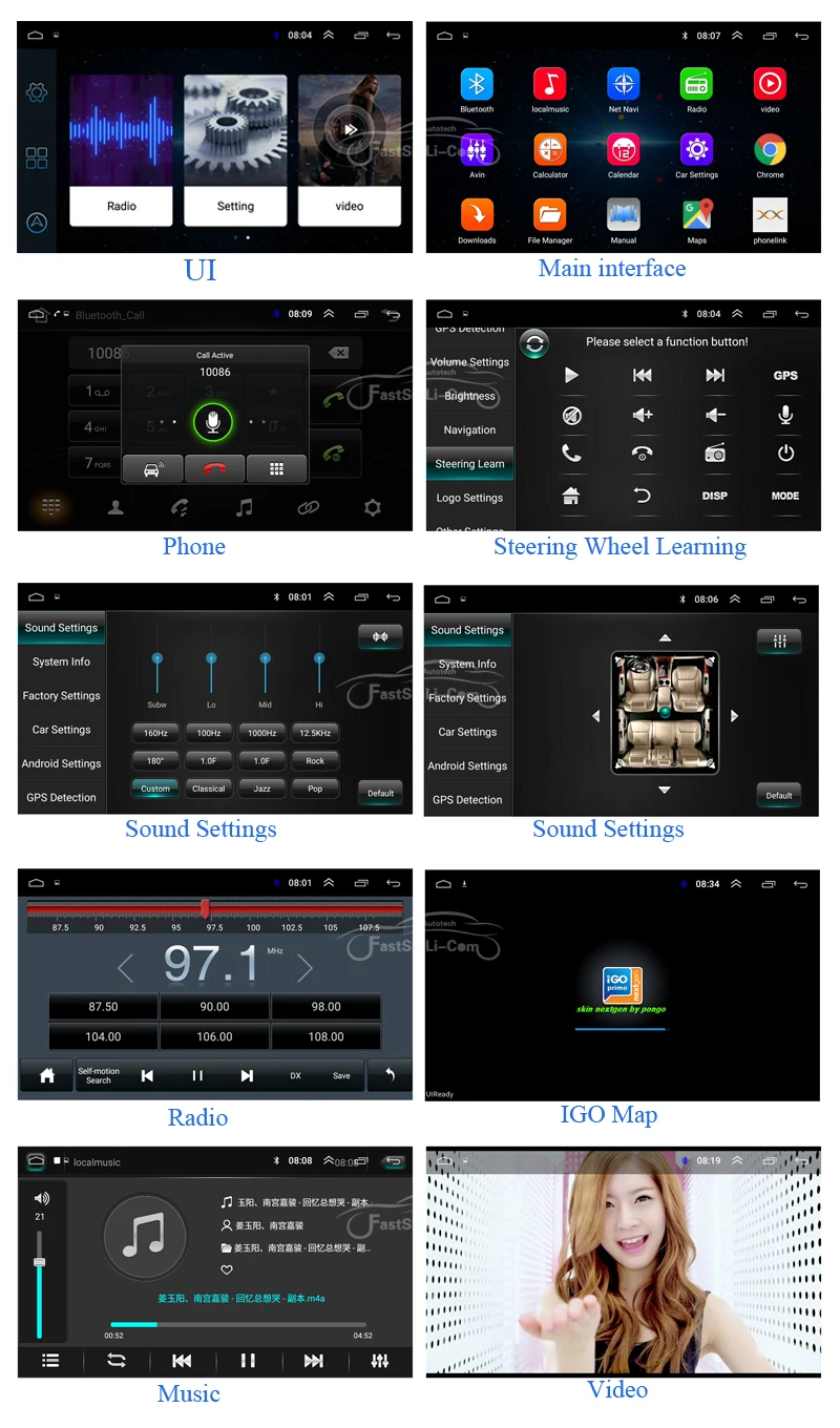 1.Android 8,1, 10,1 дюймов 1024x600,2.5DЭкран,Версия Bluetooth: 4,0
