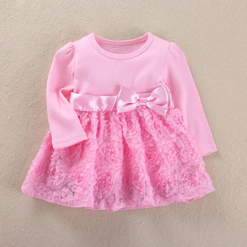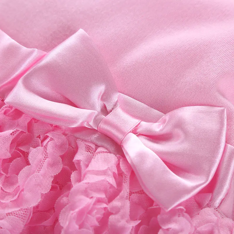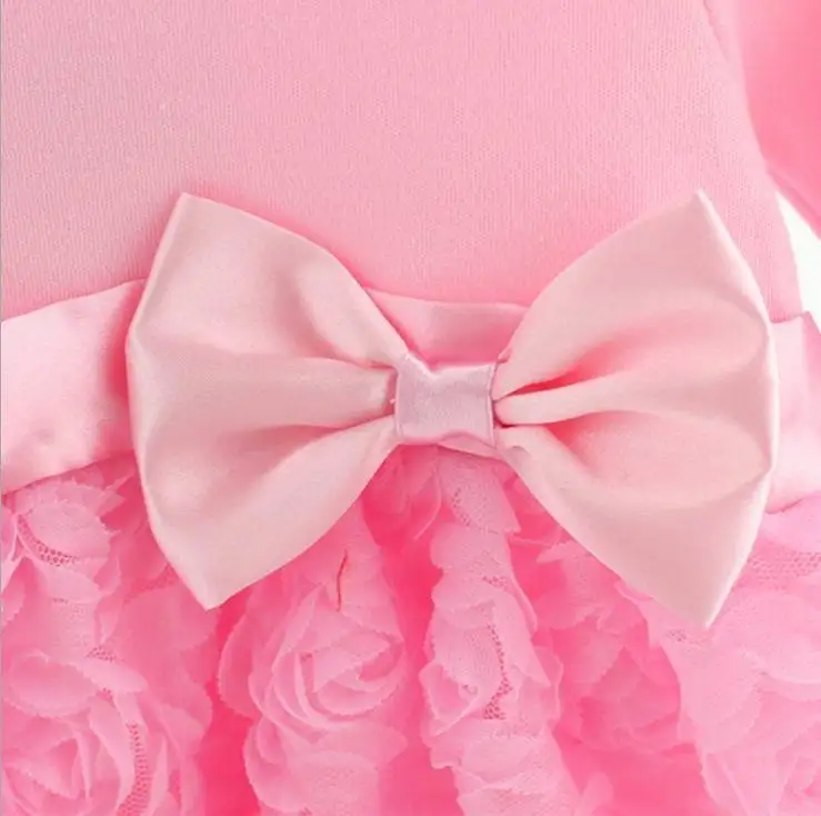 Детское кружевное платье принцессы розовое с бантом и бусинами для крещения на 1