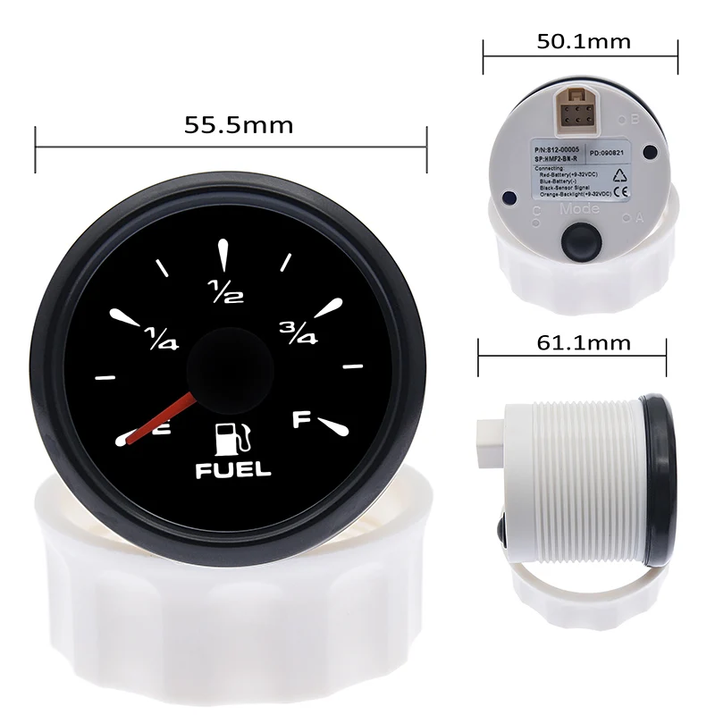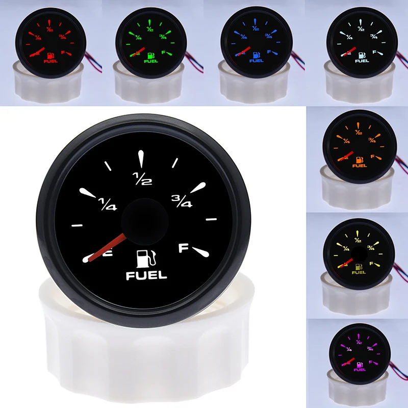 52 mm Marine Fuel Gauge Boat Car Oil Tank Level Indicator Waterproof 190 ohm Fuel Level Gauge with 7 Colors Backlight