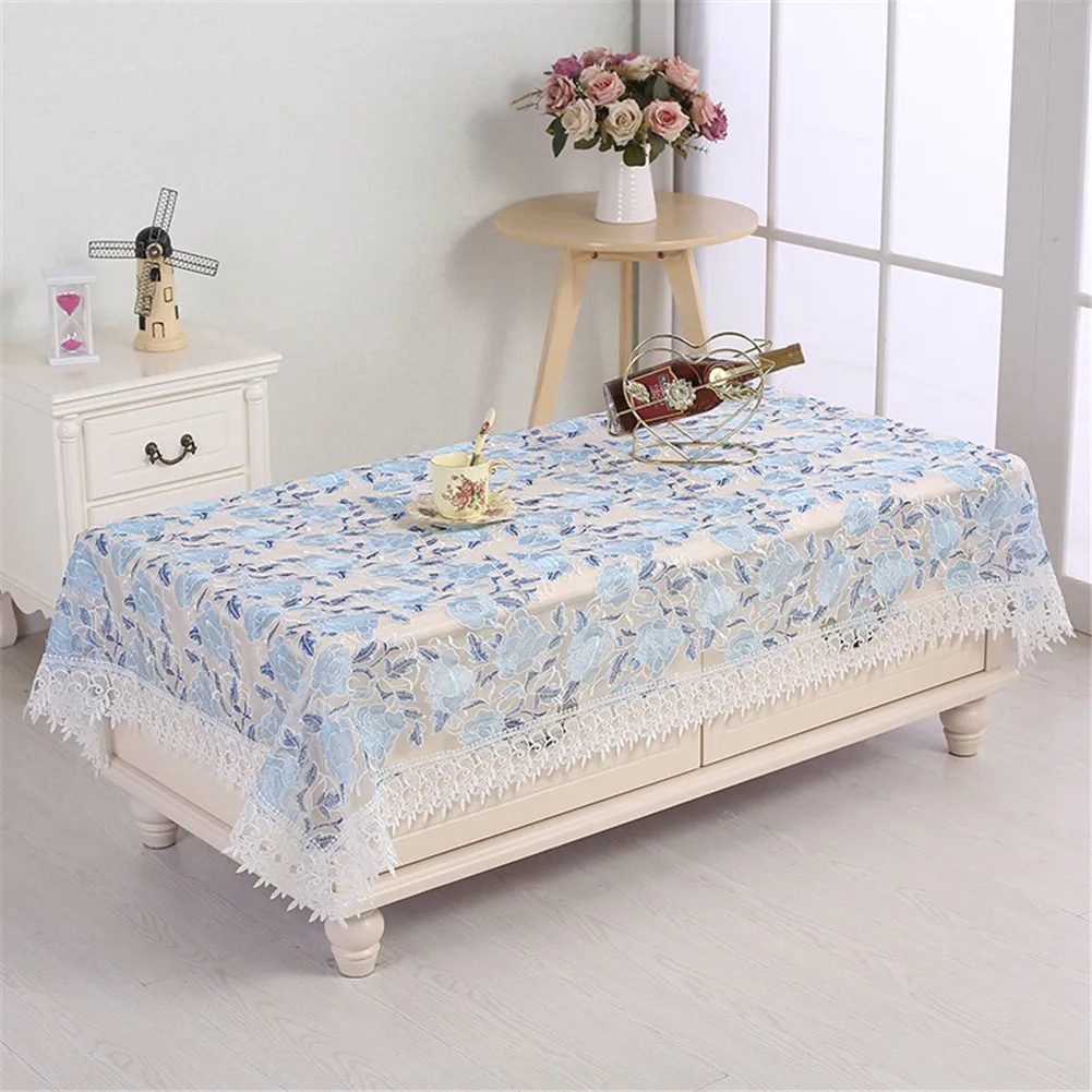 Синий и белый фарфоровый стол бегунок выдалбливают Кружева вышитые скатерти микроволновая печь холодильник пылезащитный чехол