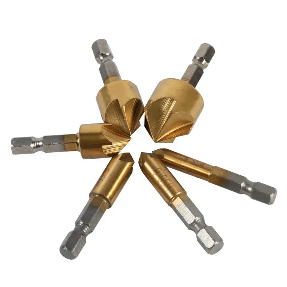 6 шт. HSS фаски зенковки фаски сверло 1/4 "шестигранный хвостовик 90 градусов древесины фаски Резак 6 мм-19 мм