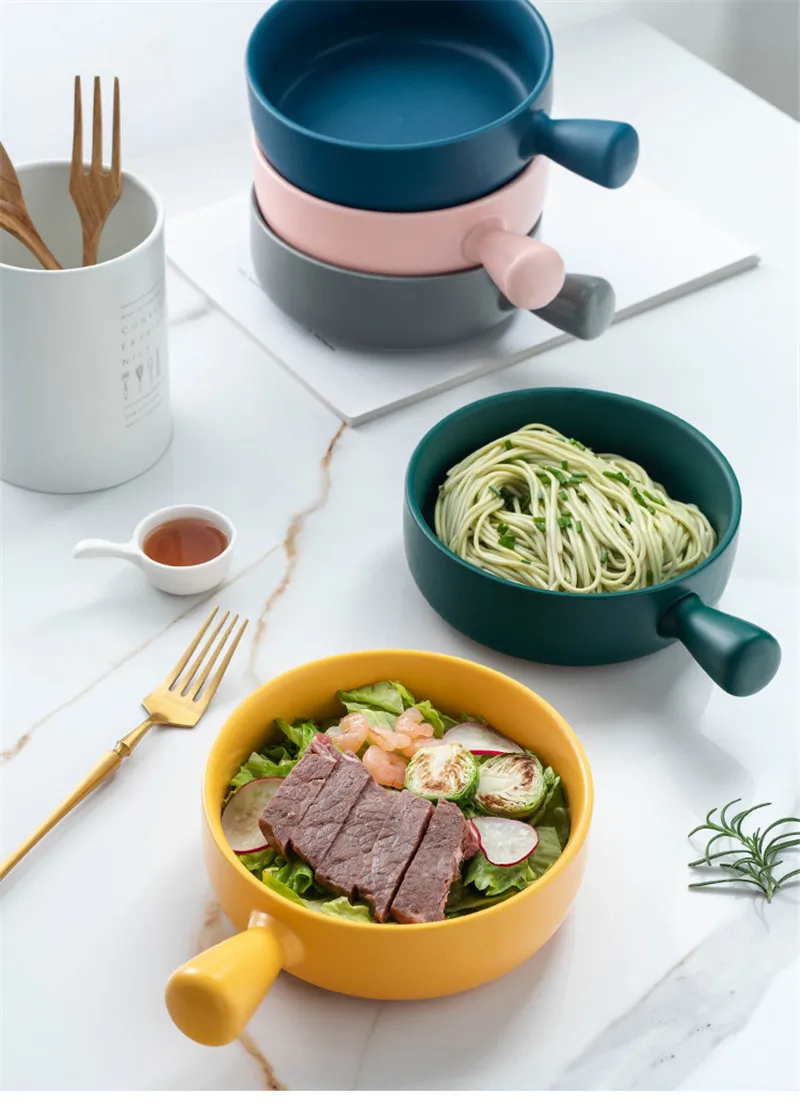 Японский стиль керамическая миска для выпечки миска для духовки с ручкой тарелка для выпечки тарелка для салата миска для супа завтрак фруктовый блюдо посуда