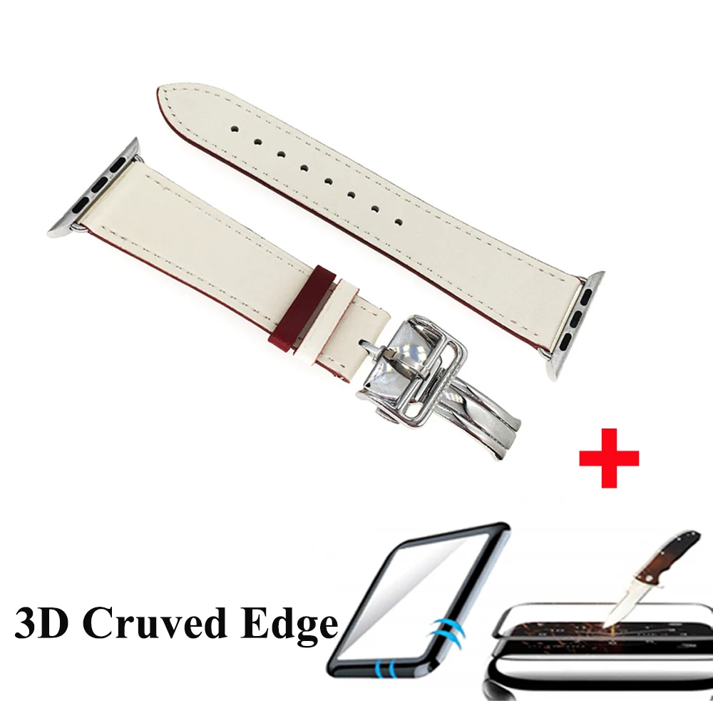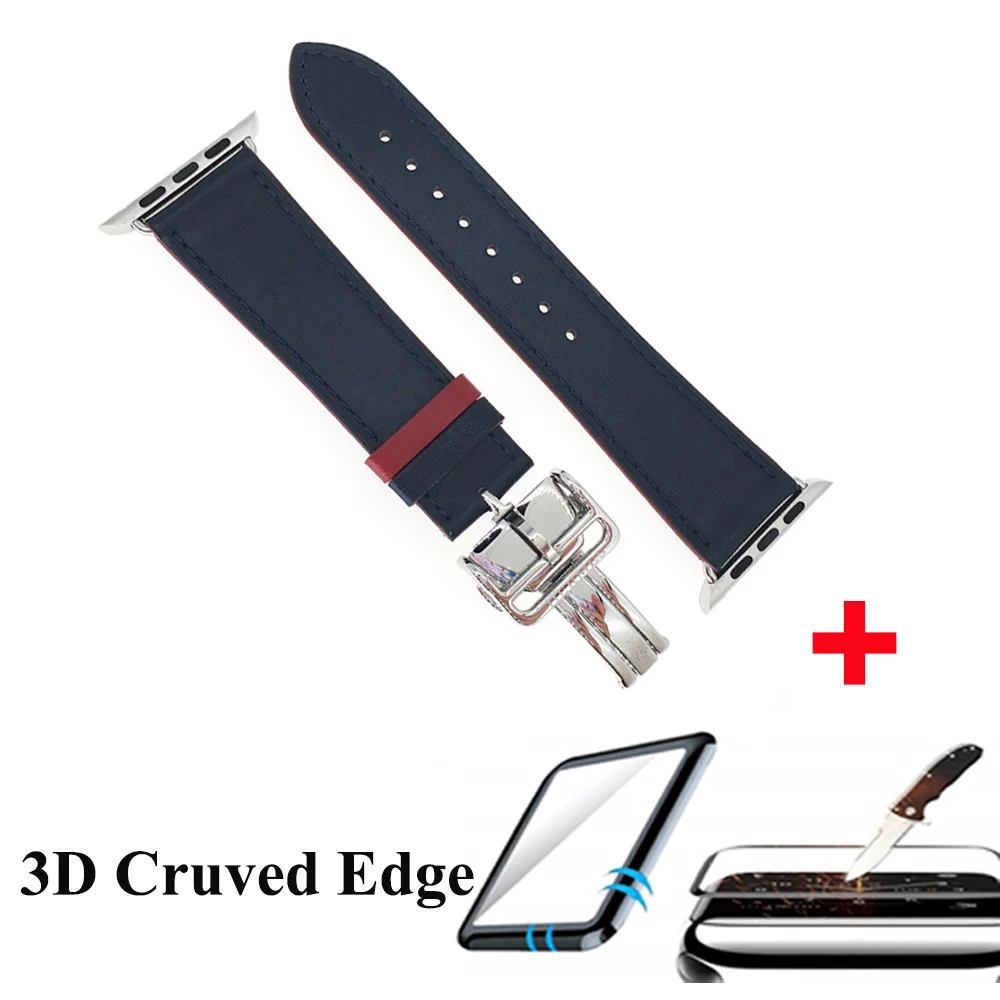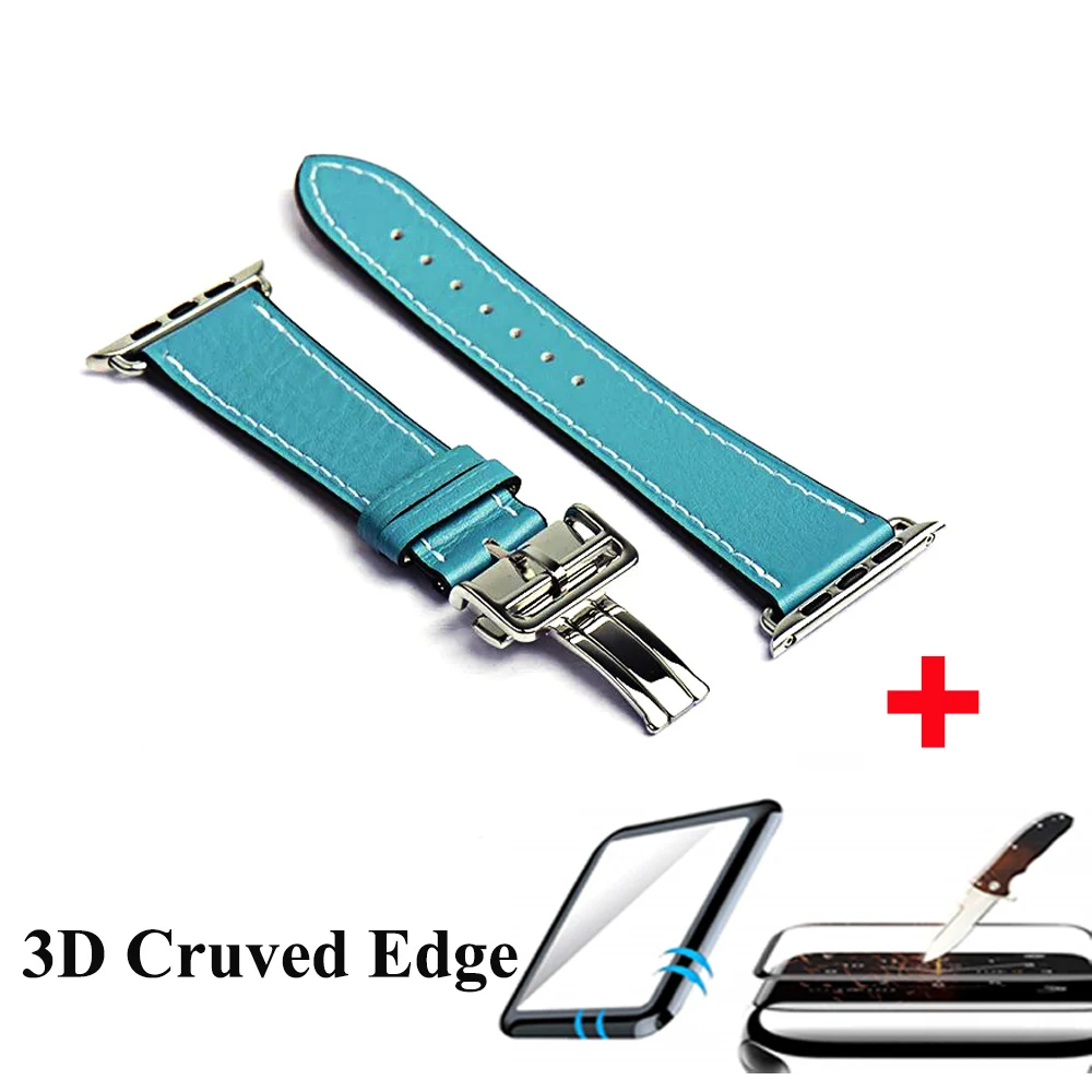 1 кожаный ремешок с пряжкой для часов с 3D стеклом для Apple Watch Series 5 4 3 2 1 44 мм 40 мм 42 мм 38 мм (iWatch не входит в комплект)