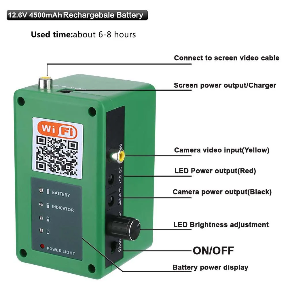 【Портативный чехол для переноски и длинная батарея】: Труба настенная канализационный эндоскоп инспекционная Камера комплект с тяжелый режим работы мягкий Алюминиевый Чехол хранит все содержимое, удобно носить с собой. Литиевый аккумулятор 12 В 4500 мАч поддерживает приблизительно 8 часов непрерывного использования.