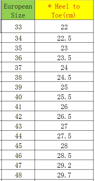 Поскольку наша обувь поставляется с разных заводов, американские размеры и длина обуви не всегда соответствуют действительности. Вы просто ссылаетесь на европейский размер в нашей таблице размеров. (Это наш единственный стандарт)