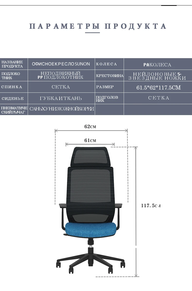 Если у вас есть какие-либо вопросы при выборе цвета, пожалуйста, сначала проконсультируйтесь! зачем вам это нужн Нейлоновая рама спинки / Галиваническая крестовина со сплава алюминия TPR поясничная опора / PP стационарные подлокотники STG механизм по собственному весу Регулировка глубины сиденья Нейлоновые 5-звездные ножки 100#10 см газлифт/PA колеса/резальная вата Размер: 61.5*62*117.5cm Вес брутто: 20.3kg