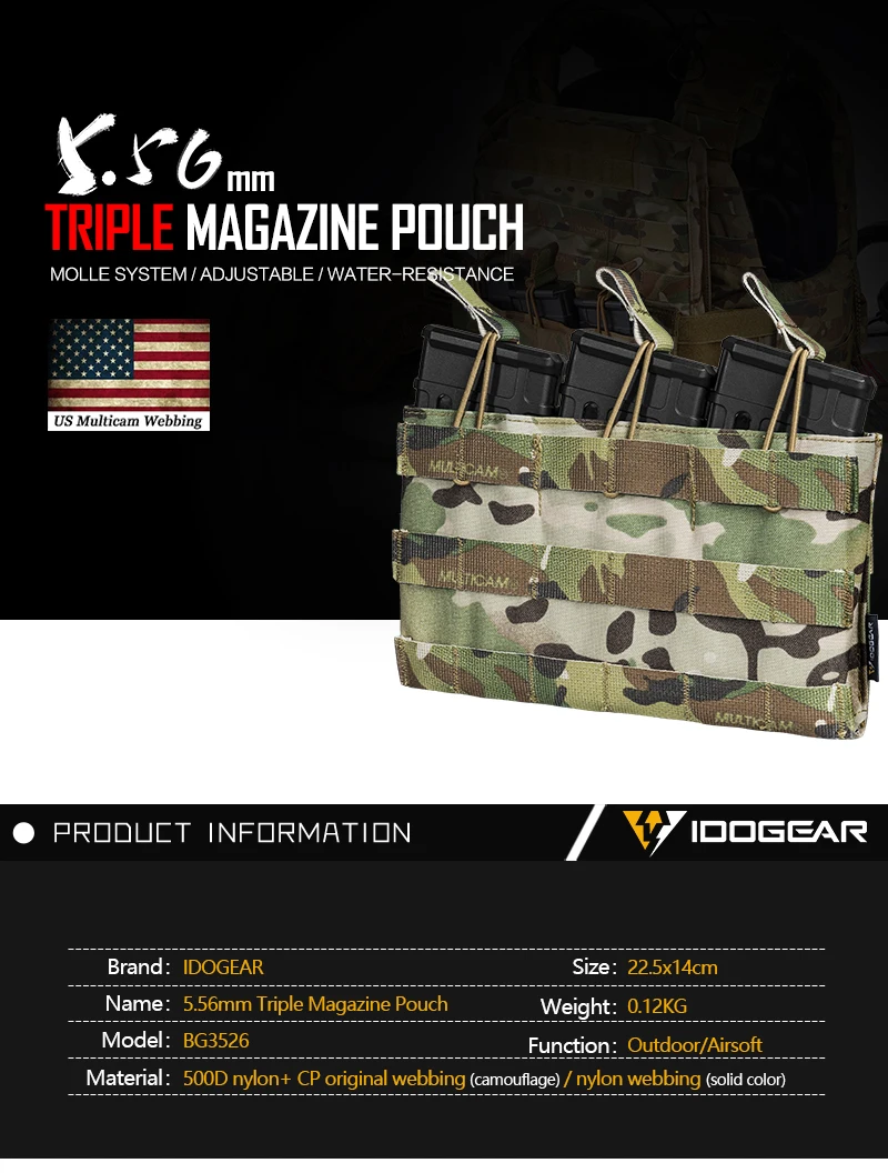 IDOGEAR тройной мешочек для журнала 5,56 Mag Чехол с открытым верхом армейский страйкбол