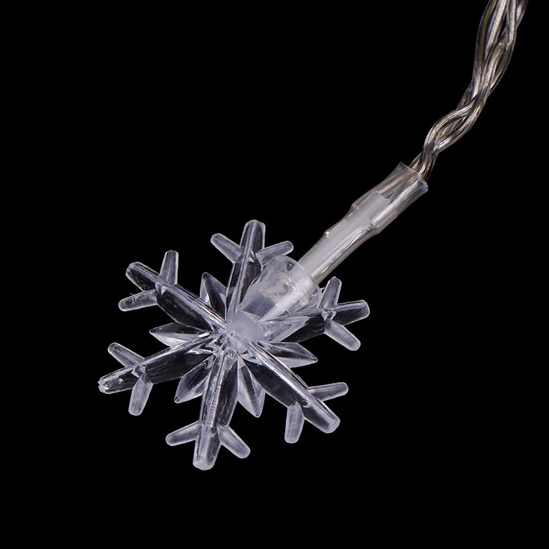 Спецификация: Товар: светодиодный гирлянда со снежинками Цвет: разноцветный или теплый белый Питание от аккумулятора: 3AA батареи (не входят в комплект) Размер: 2 м с 10 снежинками; 3 м с 20 снежинками Уровень водонепроницаемости: Ip44 Входное напряжение: 4,5 В Материал снежинки: ПВХ Применение: вечерние украшения для сада