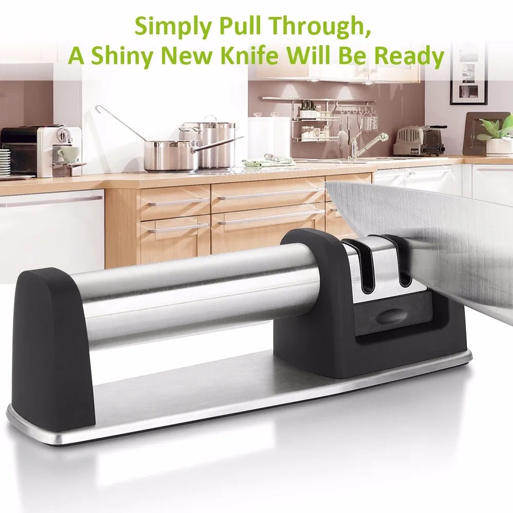 - Последняя 2-в-1 Ножи точилка:Не трать деньги на покупку Новых ножей! Эта точилка вернет все ножи в былую славу! Грубая прорезь из алмазных абразивов для тусклых ножей и лезвий, тонкая прорезь из вольфрамовой стали еще больше точит нож и восстановит форму.