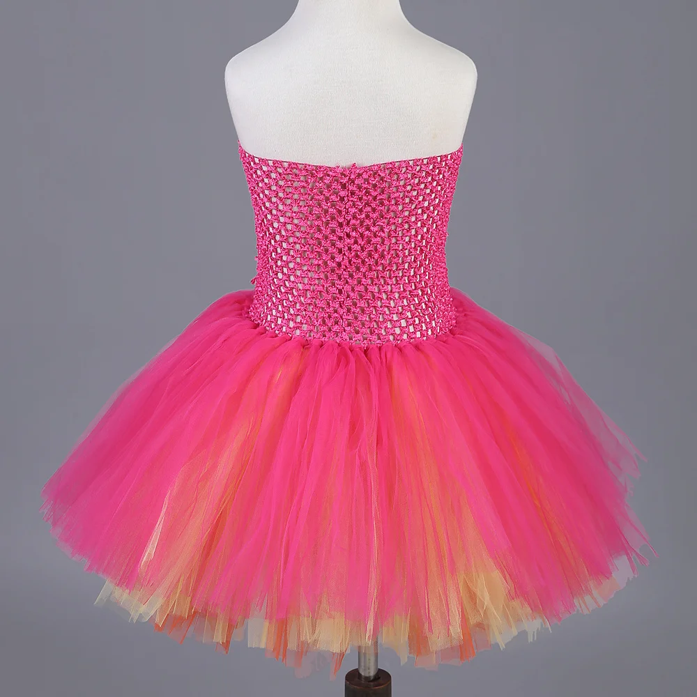 Ярко-розовое и желтое платье-пачка для девочек фатиновое Платье До Колена Для девочек Детские вечерние платья для дня рождения, одежда для детей