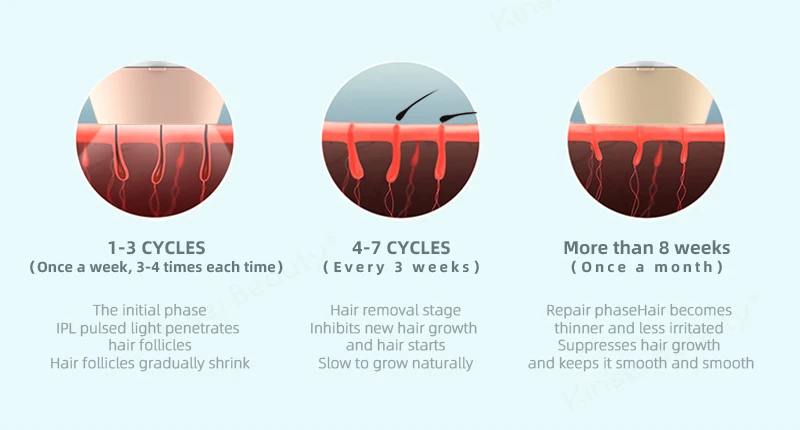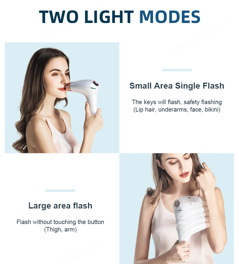 Kinseibeauty интенсивный импульсный светильник машина для удаления волос основана на теориях термического повреждения, интенсивный импульсный светильник проникает в дерму и поглощается меланином в волосяных фолликулах, производя фототермический эффект, проводя энергию от сечения волос до корня волос, быстро повышая температуру меланина и разлагая его. Таким образом, повторный рост волос постоянно останавливается.Не только удаление волос (HR)KB1819 многофункциональная IPL машина. Устройство также позволяет обрабатывать в домашних условиях такие дефекты, как морщины, кожные пятна и акне. Вы можете приобрести дополнительные лампы:Омоложение кожи (SR)ИУдаление акне (AC), Исходя из ваших особых потребностей.Лечение омоложения кожи (SR) позволит облегчить первые признаки старения, стимулируя выработку нового коллагена, который обновляет, укрепляет и опускает кожу, вы также можете осветить возрастные пятна латте-цветные текстуры и улучшить общий цвет кожи в чехол.Лечение акне (AC), тем не менее, убивает бактерии, которые вызывают акне (пропионибактерий акне) и начало несовершенства, а также тепло сухого импульсного светильник ускорит его заживление.Особенности:Технология IPL (интенсивный импульсный светильник)