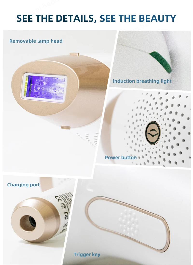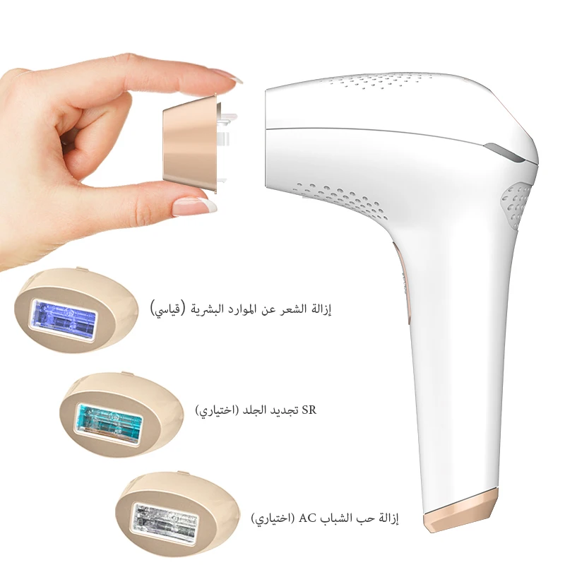 А. Постоянное удаление волос (HR)B. Омоложение кожи (SR)C. Против акне (AC)500000 импульсов Высококачественная кварцевая лампа, прочная.