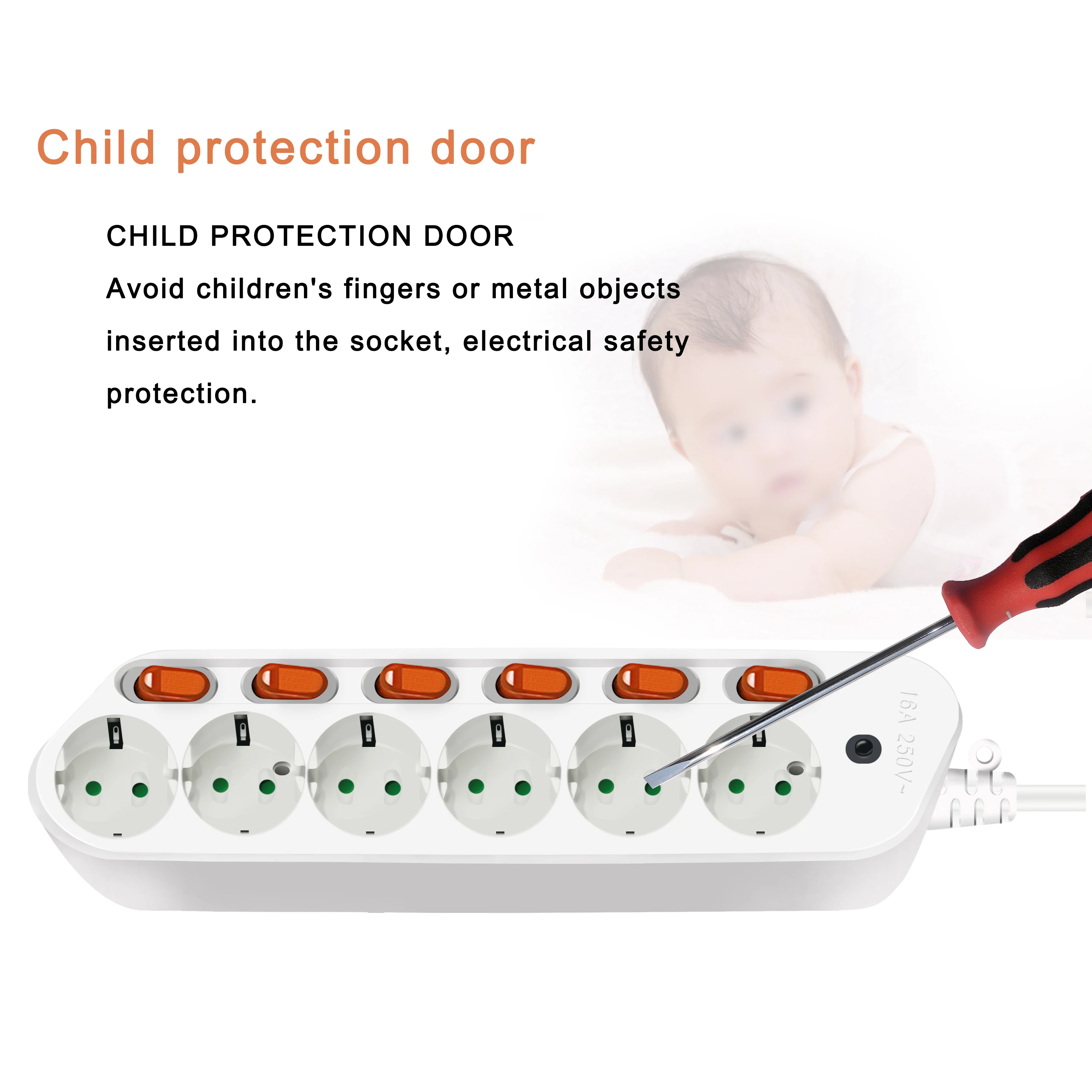 Спецификация: Номинальный ток: 3AC выход 10А/4-6AC выход 16А Номинальное напряжение: 110-250 В Номинальная мощность: 3AC Output2000W /4-6AC Output3500W Номер товара: 3/4/6AC Выход Общая Длина: 1,5 м/2,5 м Материал: корпус огнестойкий абс + медь Спецификация шнура питания: (выход 3AC 3 ядра * 1,0 мм) (выход 4-6AC 3 ядра 1,5 мм) Сертификация: KC/CE сертификация Особенности: Материал корпуса ABS огнестойкий материал. Внутренний медный контакт. Стабильности напряжения. Управление одним переключателем более удобное в использовании. Энергосберегающими качествами. Подвесное отверстие и крепежные отверстия: Проще в использовании, подвешивая розетку на стене, больше экономии пространства; Крепежные отверстия можно зафиксировать на стене с помощью винтов.