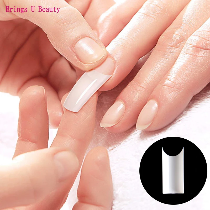 500 pcs Natural White Clear C Curved Fake Tips French Acrylic Nail Art False Nails Fashion Long Beauty False Tips 10 Sizes