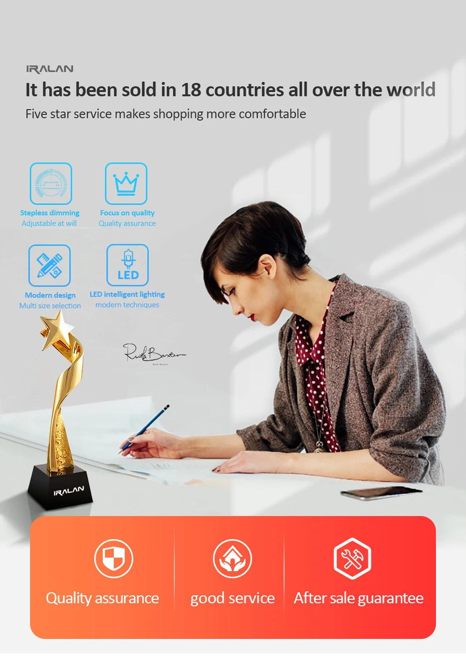 IRALAN имеет полную линейку продуктов для умного домашнего освещения, широкий спектр сценического освещения, окружающего освещения и интеллектуальных продуктов управления. Интеграция передовых технологий и эстетического дизайна является последовательной целью IRALAN. Технология AI, технология BLE MESH и интеллектуальная технология освещения для всего дома широко используются в нашей продукции. Создающий Интеллектуальный светильник и комфорт, ведущий к трансформации взаимодействия светильник ing, IRALAN всегда стремился сделать светильник с новым высоким качеством комфорта, более умным для людей в использовании. Будущее умного освещения пришло!