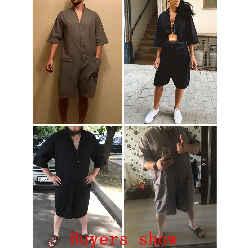 Описание изделия: мужские однотонные Свободные Комбинезоны с коротким рукавом.