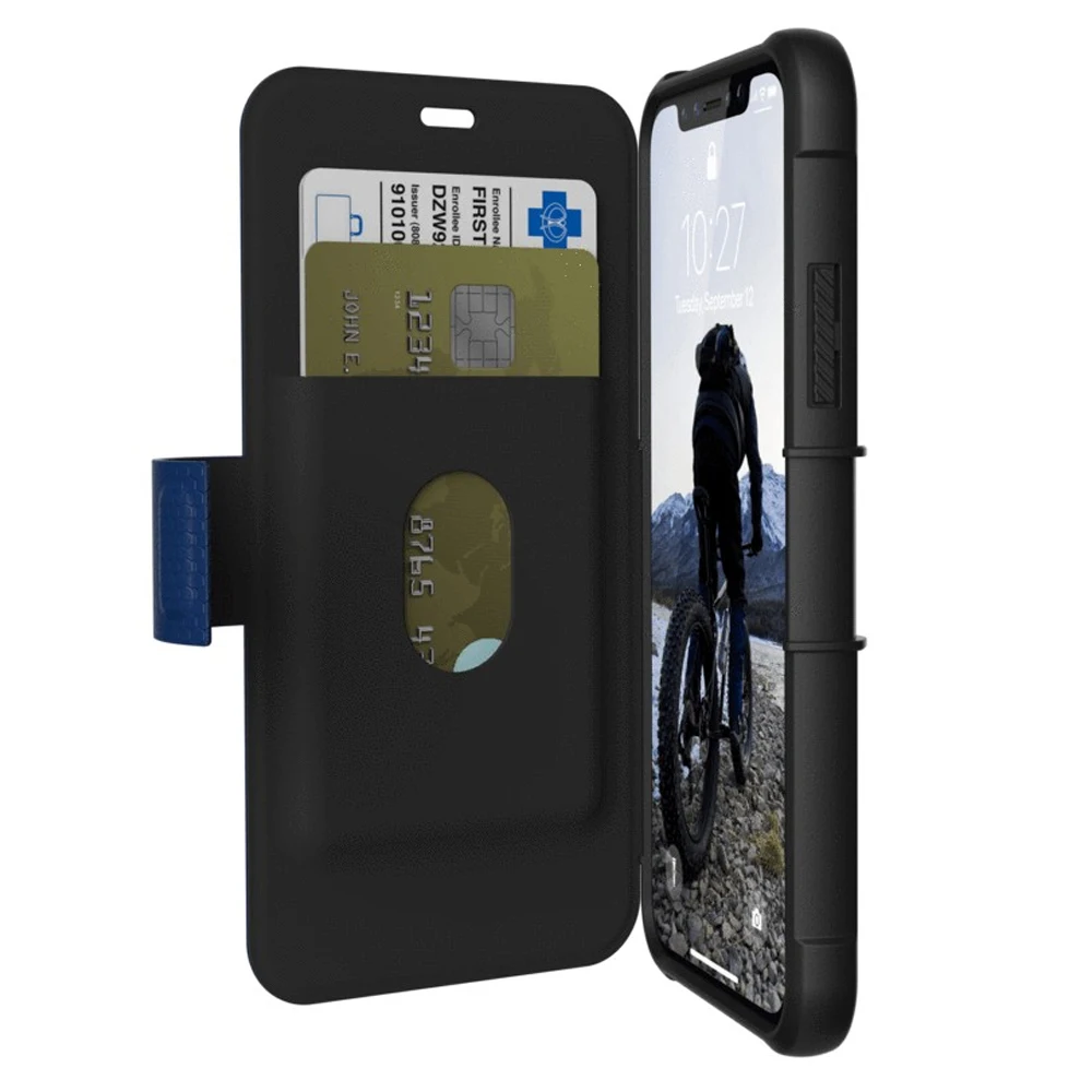 Защитный чехол UAG Metropolis для iPhone X имеет легкий корпус с мягкой резиновой крышкой для полной 360-градусной защиты. Изделие прошло испытания на ударопрочность при падении и соответствует военному стандарту ударопрочности MIL STD 810G 516.6. Для кредитных карт есть свое внутреннее отделение. Чехол не увеличит размеры телефона, оснащен точными вырезами и тактильными кнопками, обеспечивающими быстрый и легкий доступ.