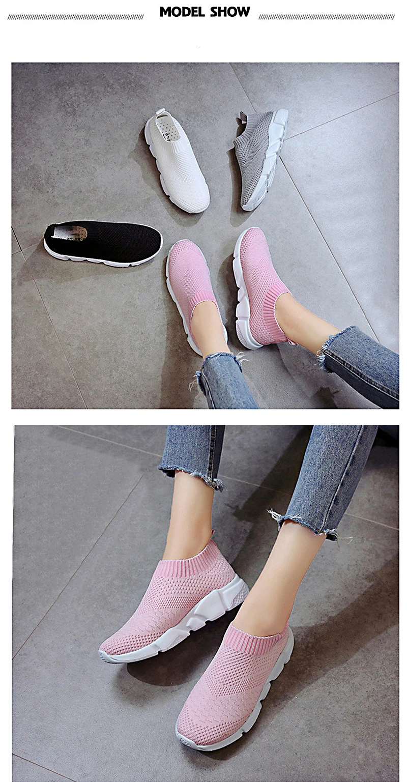 Сезон весна; большие размеры; Женские Повседневные вязаные носки; кроссовки на плоской платформе; Модные женские слипоны; женская обувь для отдыха