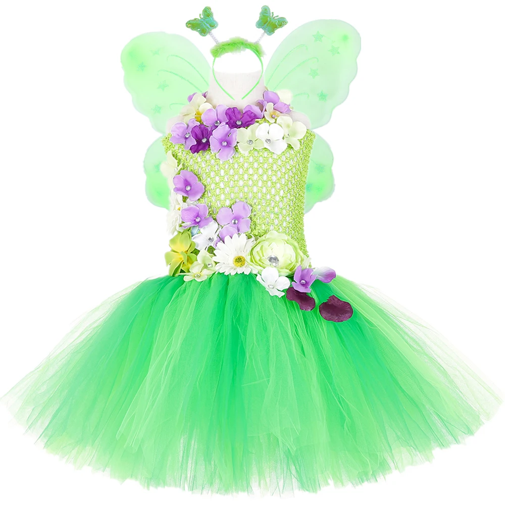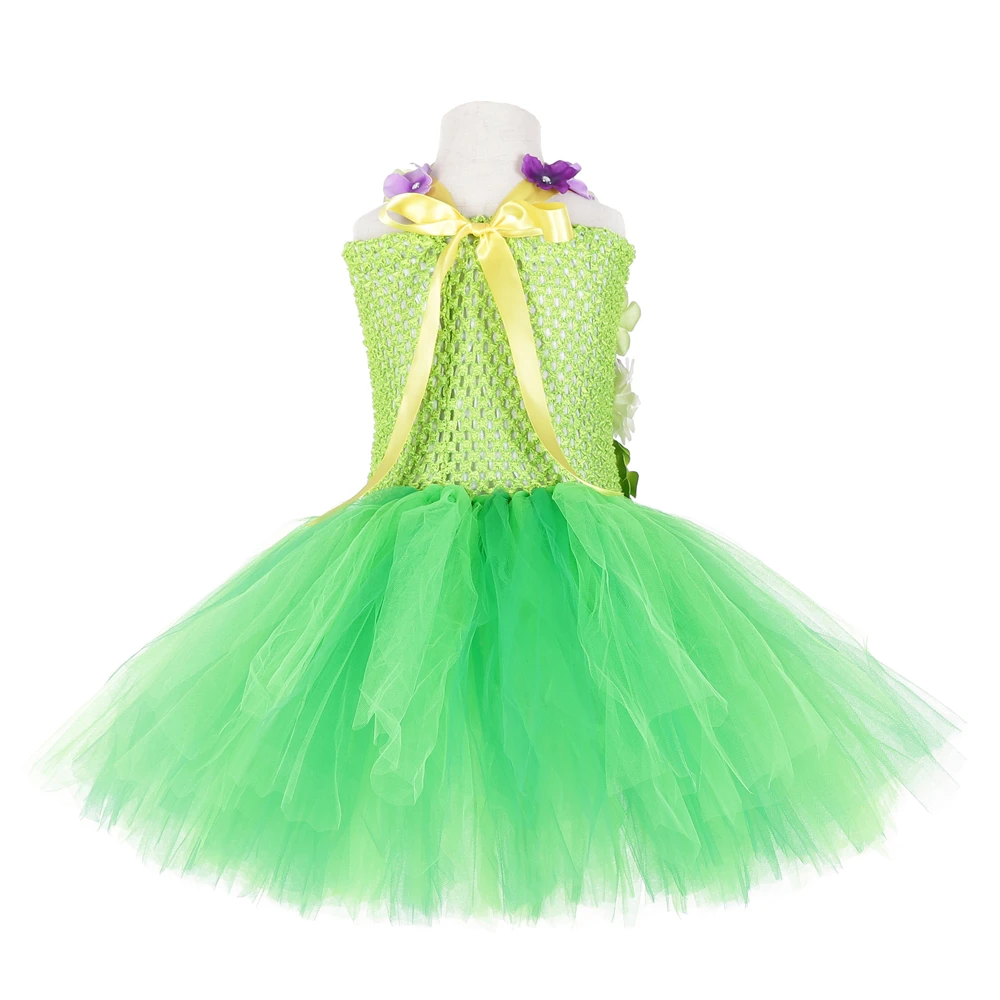 1 комплект, Сказочная балетная пачка в стиле Тинкербелл, платье зеленого цвета для девочек, нарядное платье феи с цветами для девочек, вечерние костюмы на день рождения, Хэллоуин