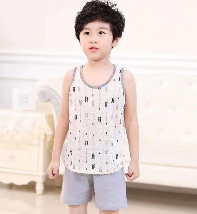 Girls Boys Summer Clothing Set Cotton Homewear Kids Clothes Tank tops T shirt Beach Shorts outfits Pyjamas