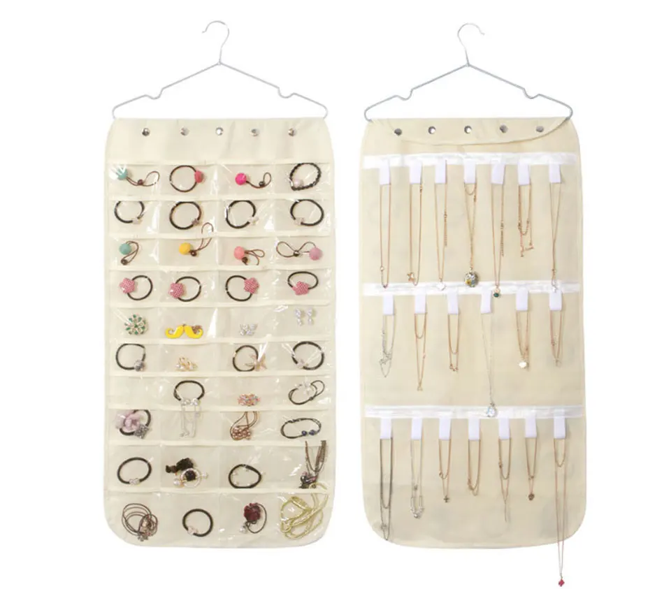 Прочные нетканые полиэфирные ткани, износостойкие Двусторонний Органайзер висит на удочке или крючке, чтобы увеличить пространство и Вертлюги С вешалкой, удобно положить его в любом месте, он может закатываться для удобной переноски, идеально подходит для использования в путешествиях Хорошо отображает ювелирные изделия и удобно выбирать что-то, чтобы носить с нарядом, занимает такое же пространство, как рубашка, висящая в шкафу