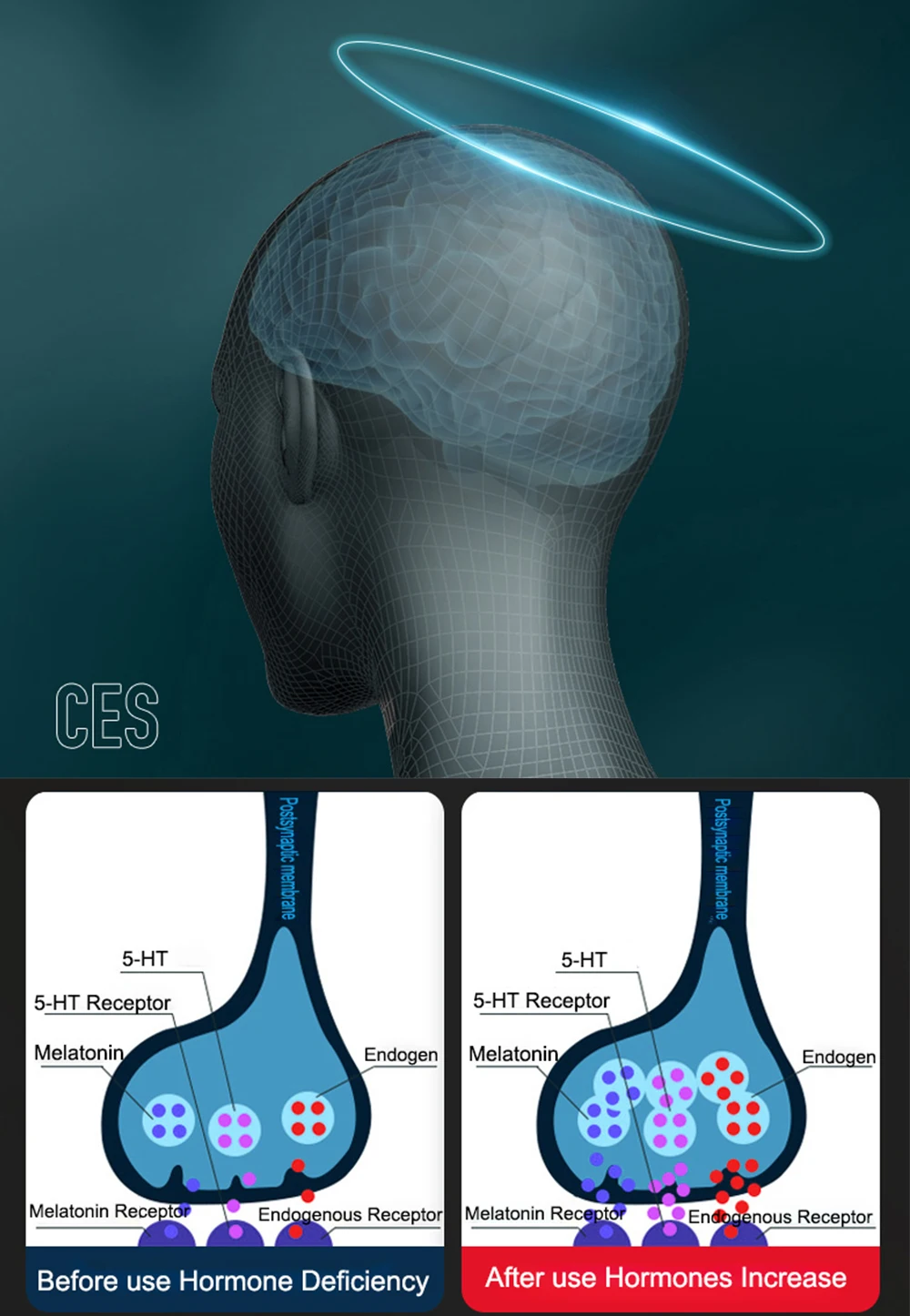 CES стимулирует работу мозга, чтобы производить серотонин при понижении кортизола (гормон стресса).