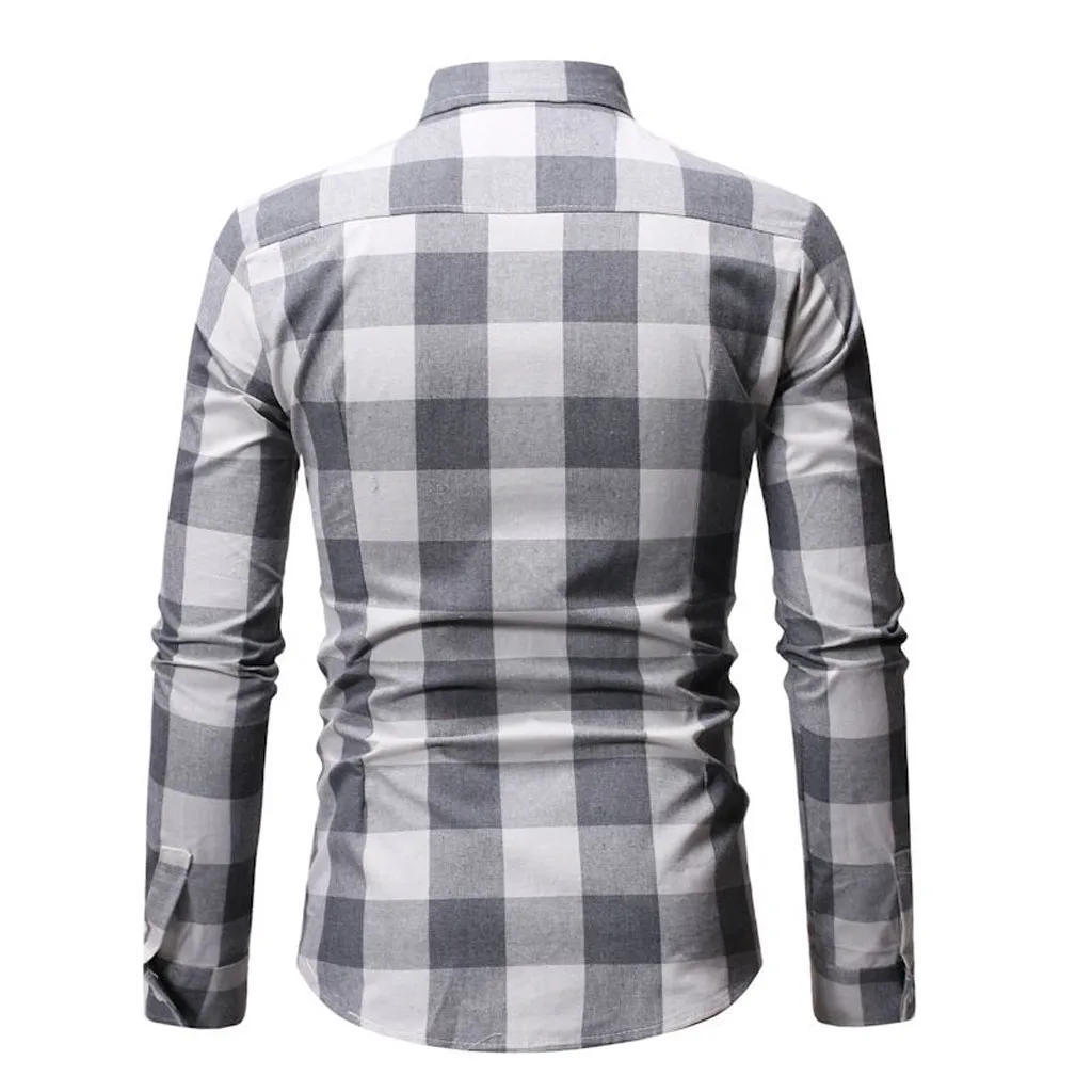 Мужская новая простая клетчатая рубашка с длинным рукавом, модная блуза с длинным рукавом, Топ