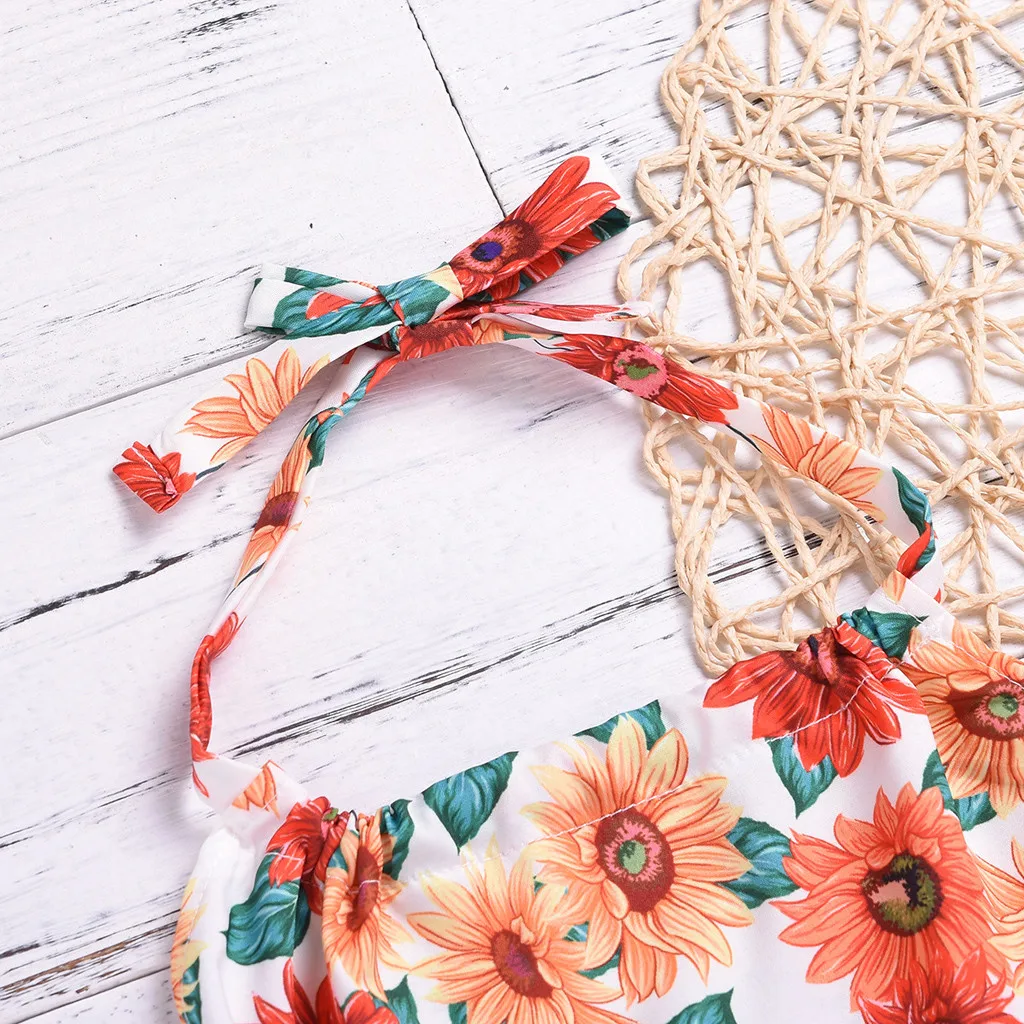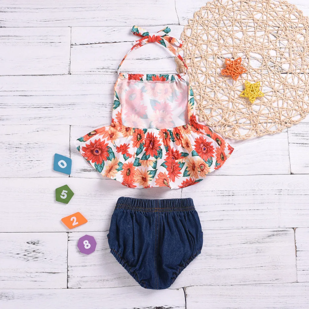 Повседневные топы принцессы на бретельках с цветочным принтом для маленьких девочек, джинсовые шорты, комплект из 2 предметов