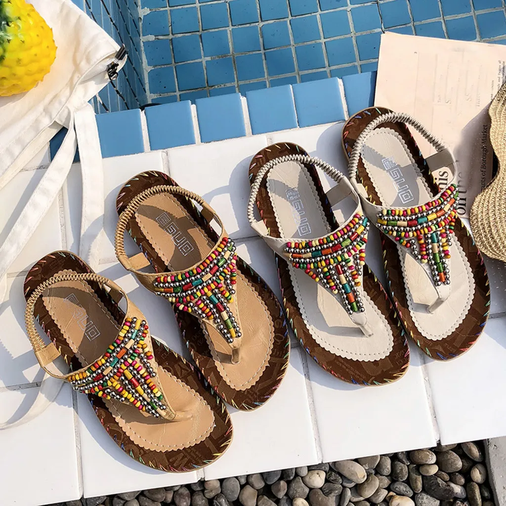 Женская Повседневная пляжная обувь, босоножки с бусинами