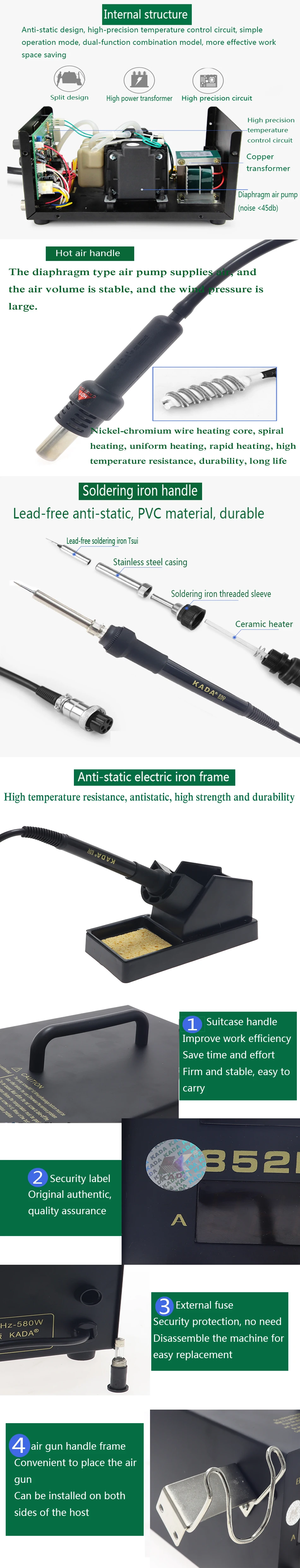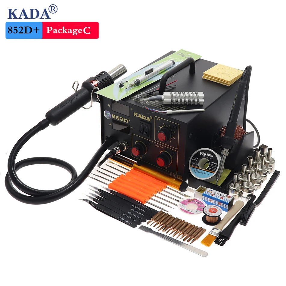 KADA 852D + двойной цифровой дисплей горячего воздуха станция Электрический паяльник станция 2-в-1 BGA паяльная станция телефонный Ремонт набор инструментов