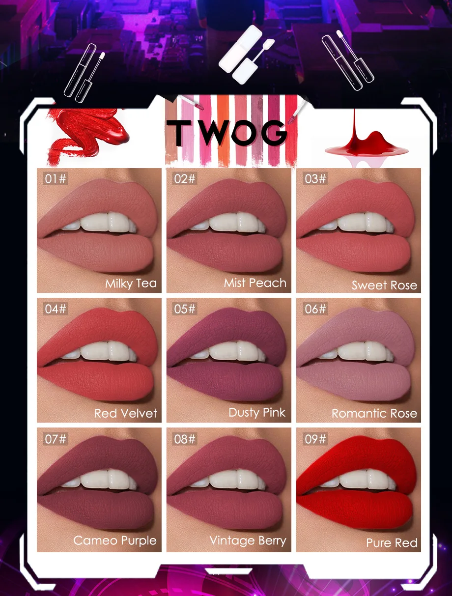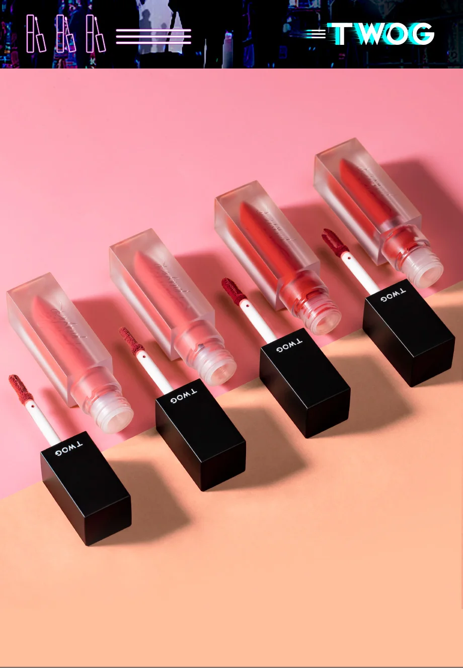 Макияж Губная помада Косметика матовая губная помада блеск для губ TWOG любовь стойкая жидкость Maquiagem легко носить матовые водонепроницаемые губные палочки