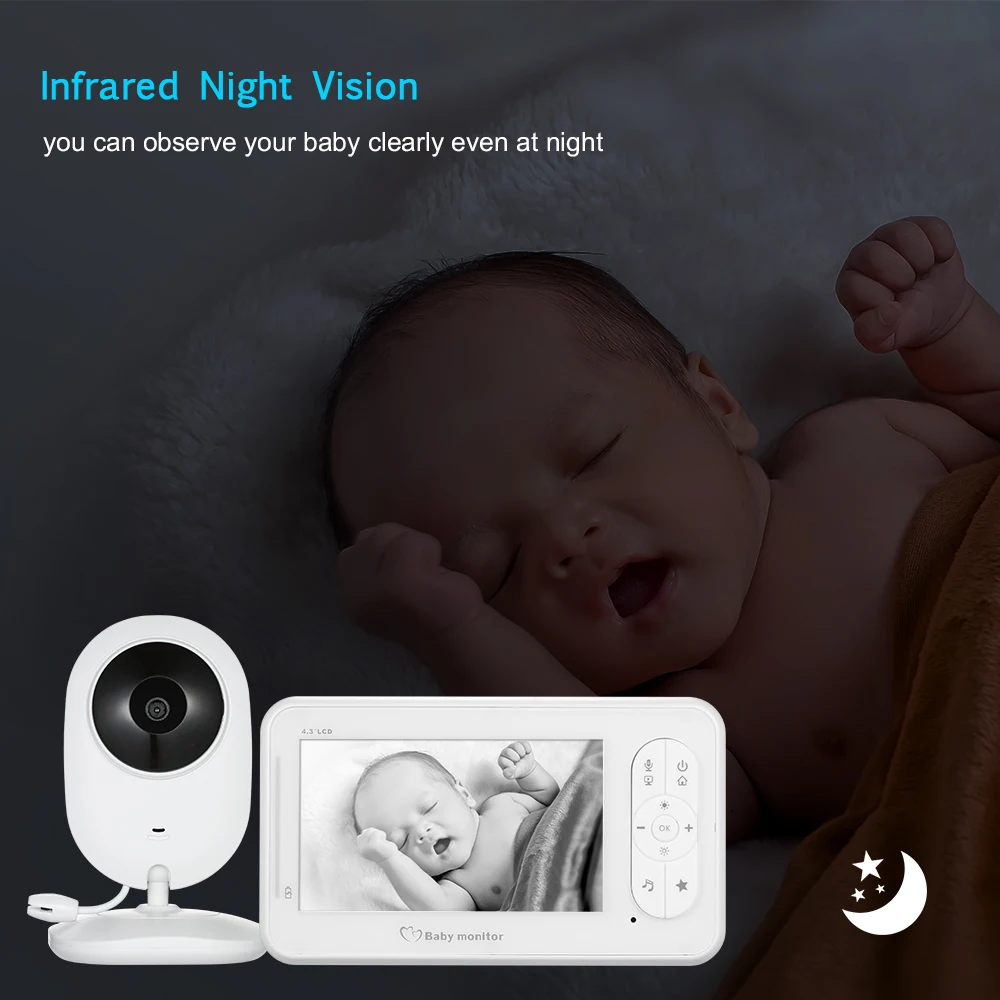 Инфракрасное Ночное Видение:Камера сконструирована с помощью сенсора, светильник с инфракрасным ночным видением позволяет вам четко наблюдать за ребенком даже в ночное время.