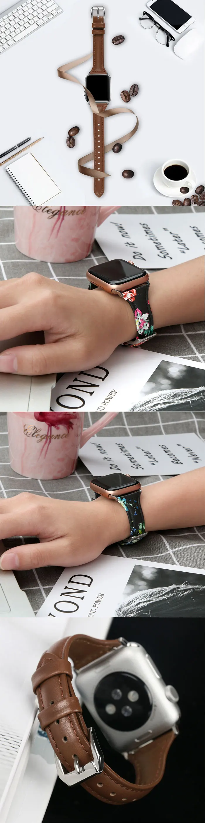 Кожаный ремешок с принтом для apple watch 5, 6, 44 мм, 40 мм, 42 мм, 38 мм, браслет для iwatch series 6/5/SE/4/3/2/1
