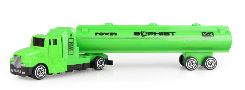 Изготовлен из экологически чистого пластика с высоким качеством, некоторые части из сплава. Портативный размер, легко подходит для детей и игр. Контейнеровоз может быть разобран, головка контейнера и boby могут быть разделены. Пять цветов на ваш выбор.