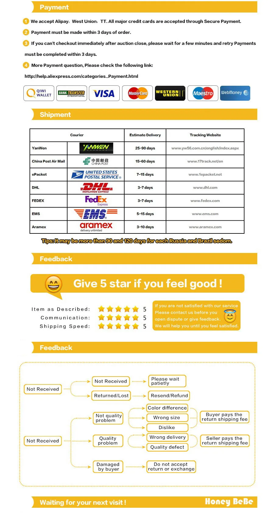 В связи с тем, что некоторые отдаленные страны долгое время отправляют нам сообщение, мы продлим время получения, чтобы обеспечить безопасное прибытие Вашей упаковки.