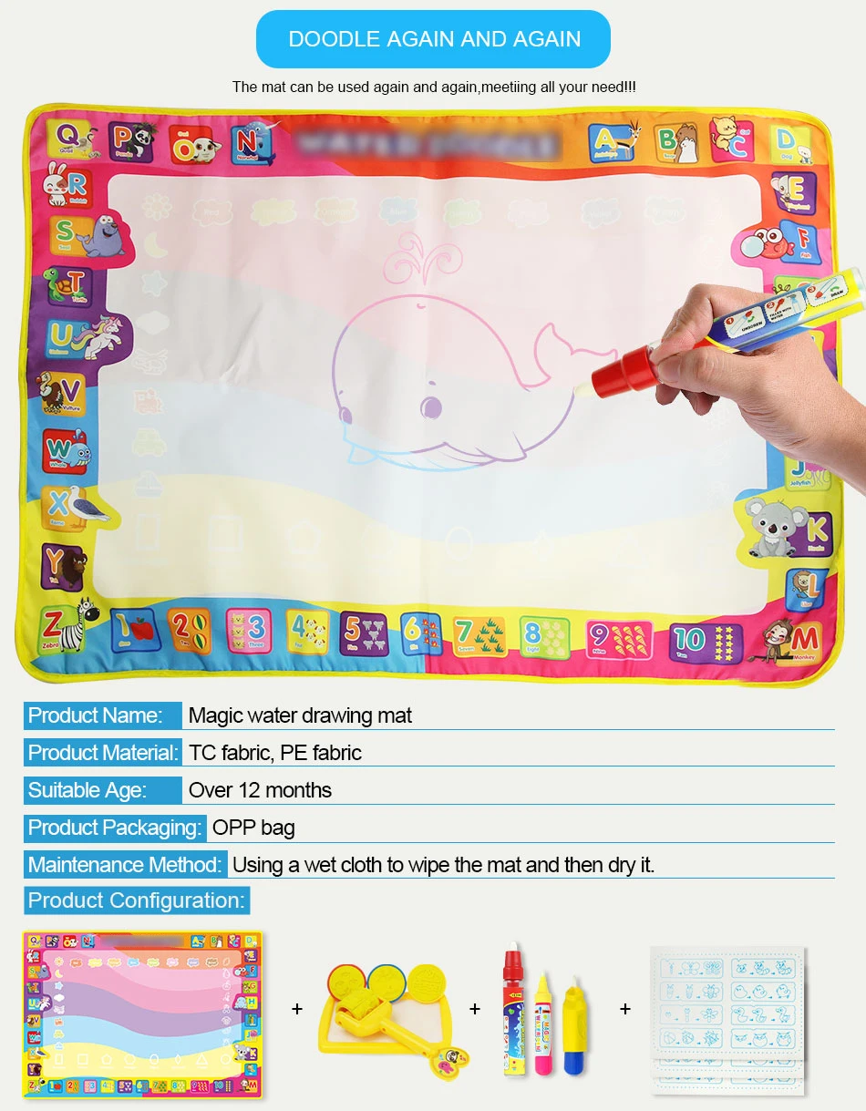 1. Заполнение ручек без красителя. Он бесцветный, безвкусный и нетоксичный. Который является чистым и безопасным для детей и детей не будет окрашивать дом. 2. Цвет на коврике исчезнет автоматически, его можно использовать повторно, чтобы удовлетворить потребности ребенка в живописи и использовать свое воображение 3. Коврик для каракулей изготовлен из высококачественной и экологически чистой ткани, которая может быть многократно окрашена и сохранена.