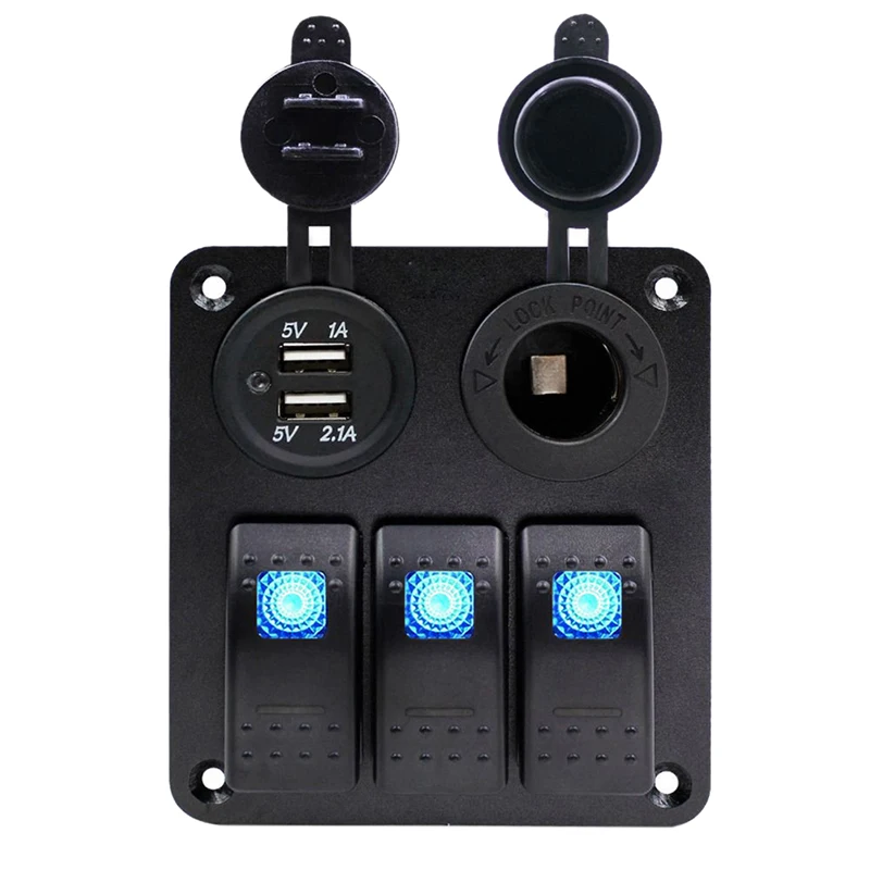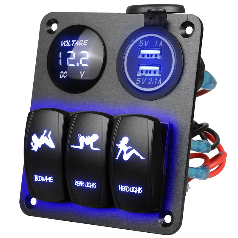 6-канальный синий светодиодный кулисный переключатель, розетка для сигареты 12 В, Вольтметр и зарядное устройство с двумя USB-портами 3,1 А, полное заполнение всех видов потребностей в зарядке