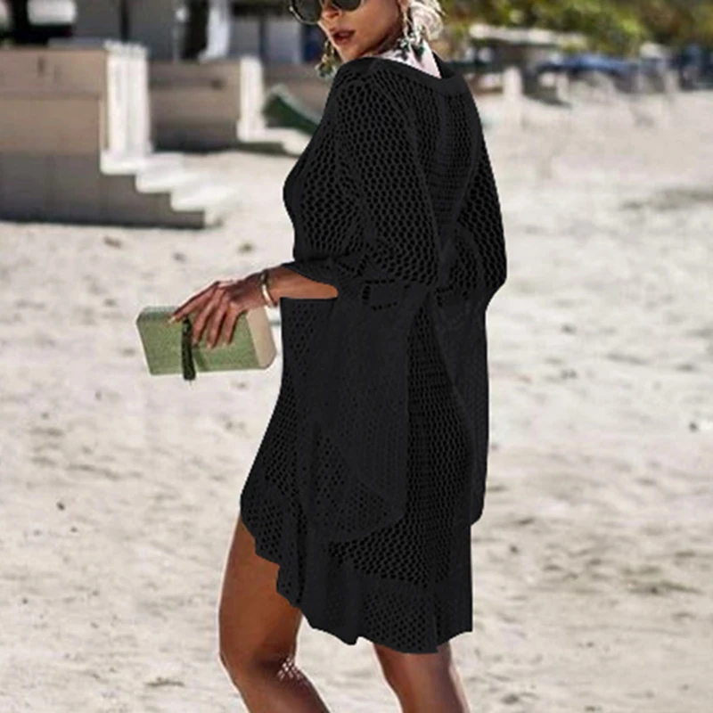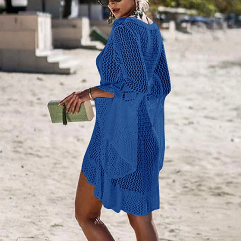 * Описание товара: женское ажурное пляжное платье для отдыха, трикотажная блузка, солнцезащитное платье бикини