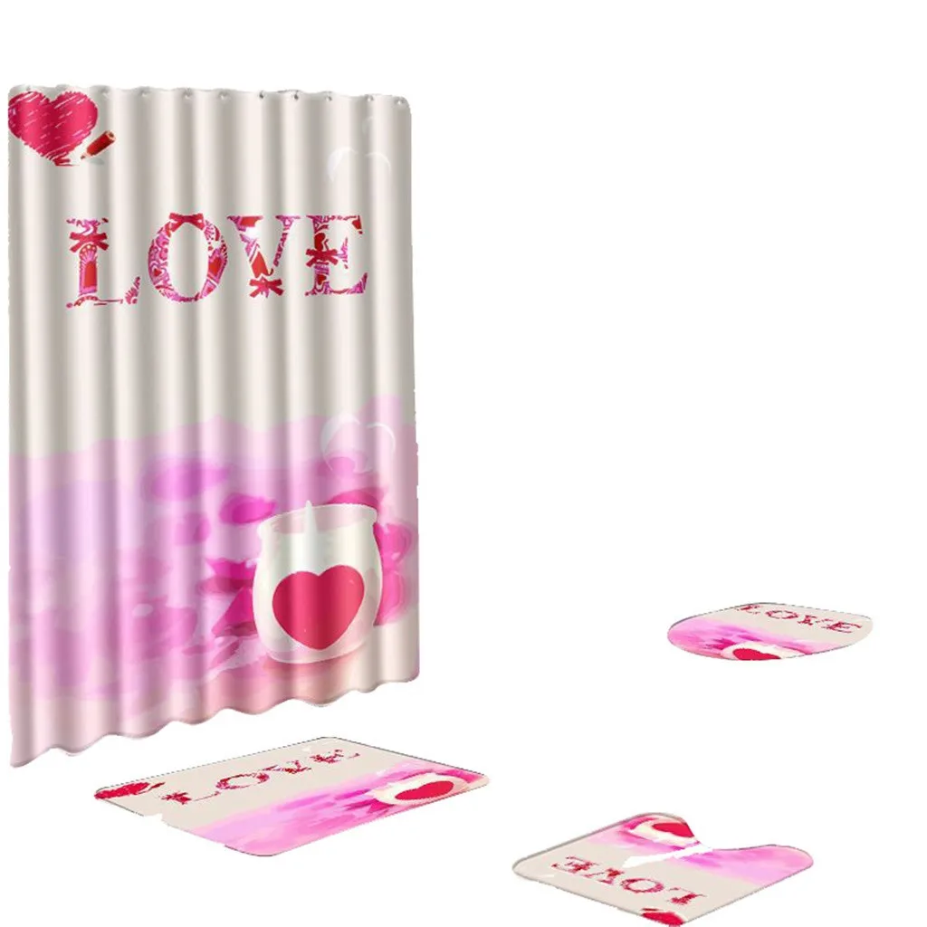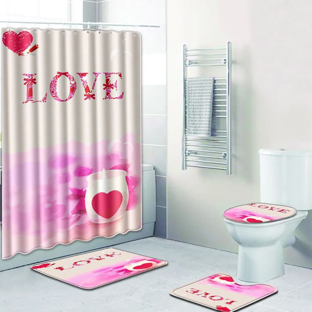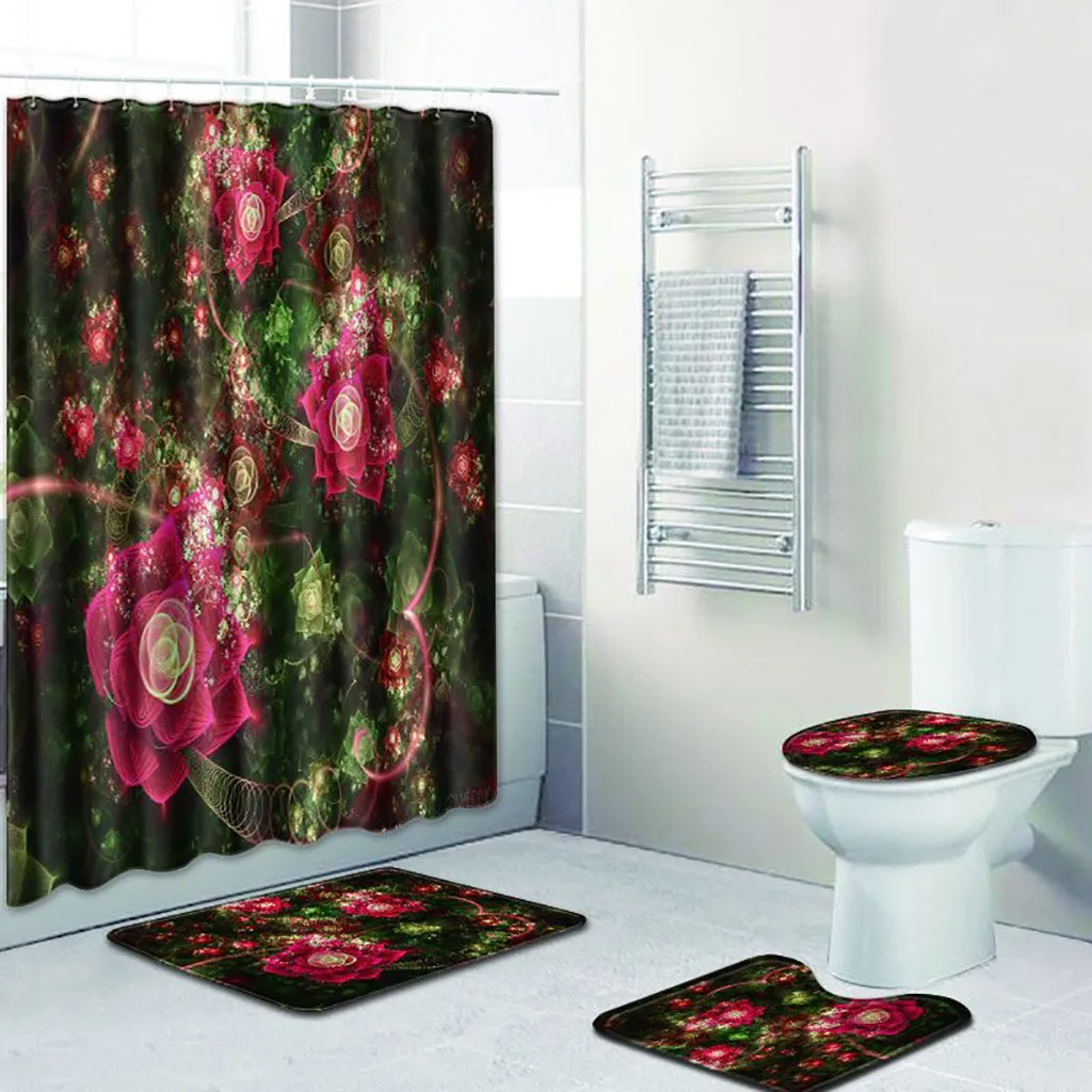 4 шт. Нескользящие унитаз полиэстер покрытие коврик набор ванная комната занавеска для душа