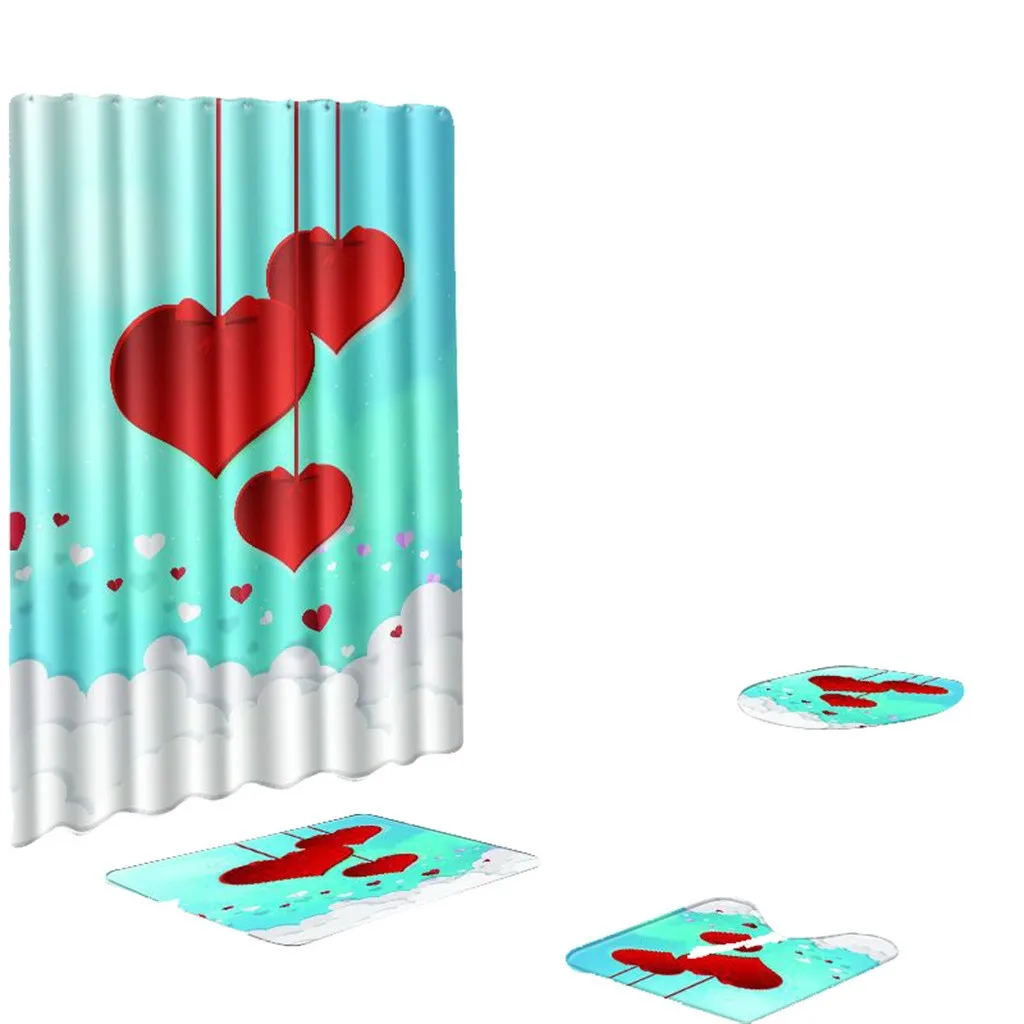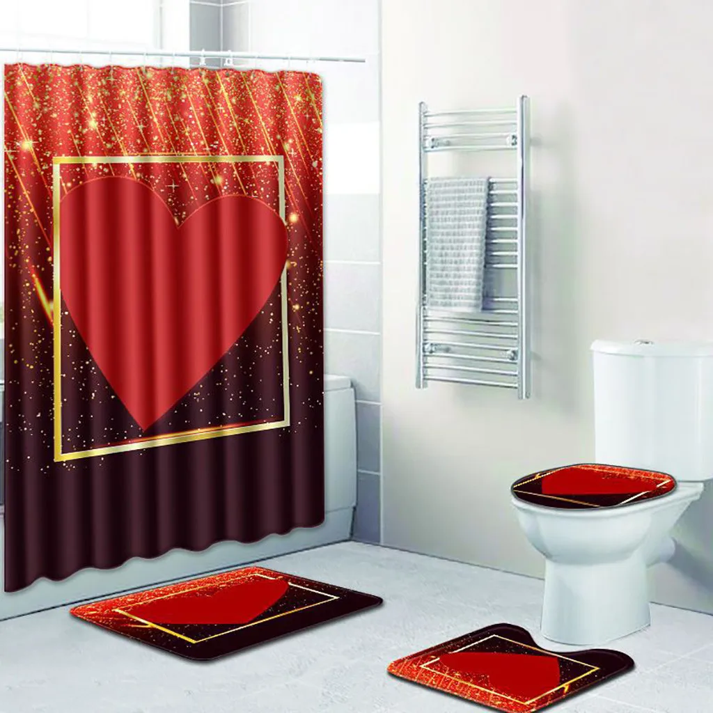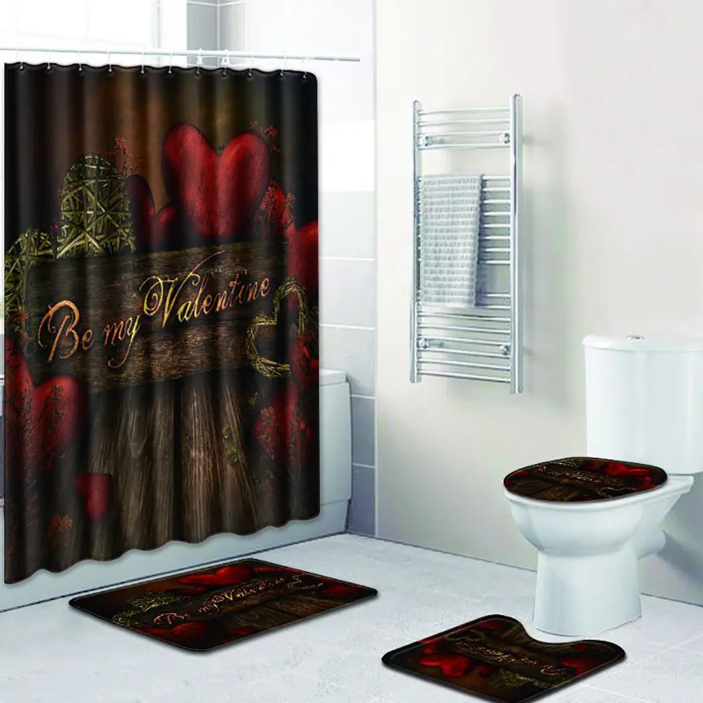 4 шт. Нескользящие унитаз полиэстер покрытие коврик набор ванная комната занавеска для душа