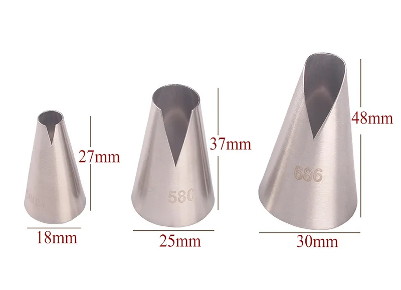 -Прочный, нетоксичный, простой в использовании и очистке.-Веселый и незаменимый инструмент для персонализации и украшения любимых десертов.-Отличный комплект для изготовления красивых украшений для торта!Тип:Кухонные принадлежностиМатериал:Нержавеющая сталь 304Цвет:СереброРазмер: см. ИзображениеПосылка#686 #580 #580S:1 шт. насадка для глазуриМикс: 3 шт. x Кондитерские насадки для глазуриОбратите внимание:1) из-за ручного измерения размер может иметь погрешность 1-2 мм2) из-за различных мониторов цвет может отличаться3) длительная доставка, товар может повредиться при транспортировке, если товар поврежден, пожалуйста, сначала свяжитесь с нами, прежде чем оставить отзывы в, спасибо за понимание