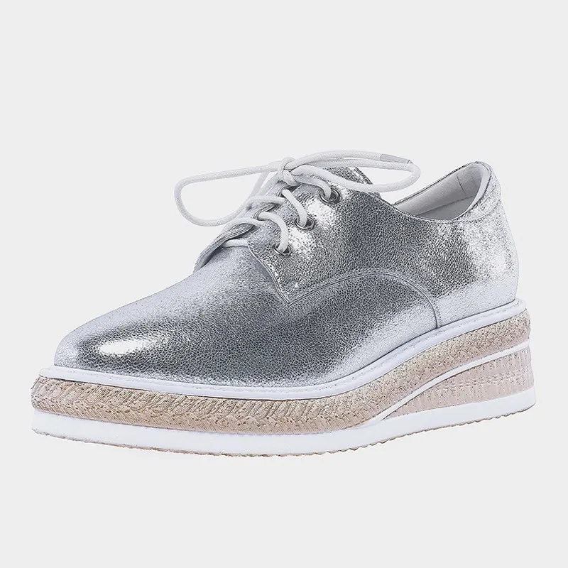 Женская обувь из натуральной кожи на плоской платформе; Новинка 2019 года; женская повседневная обувь на шнуровке; модная женская кожаная обувь на плоской подошве с квадратным носком; цвет синий, серебристый; E022